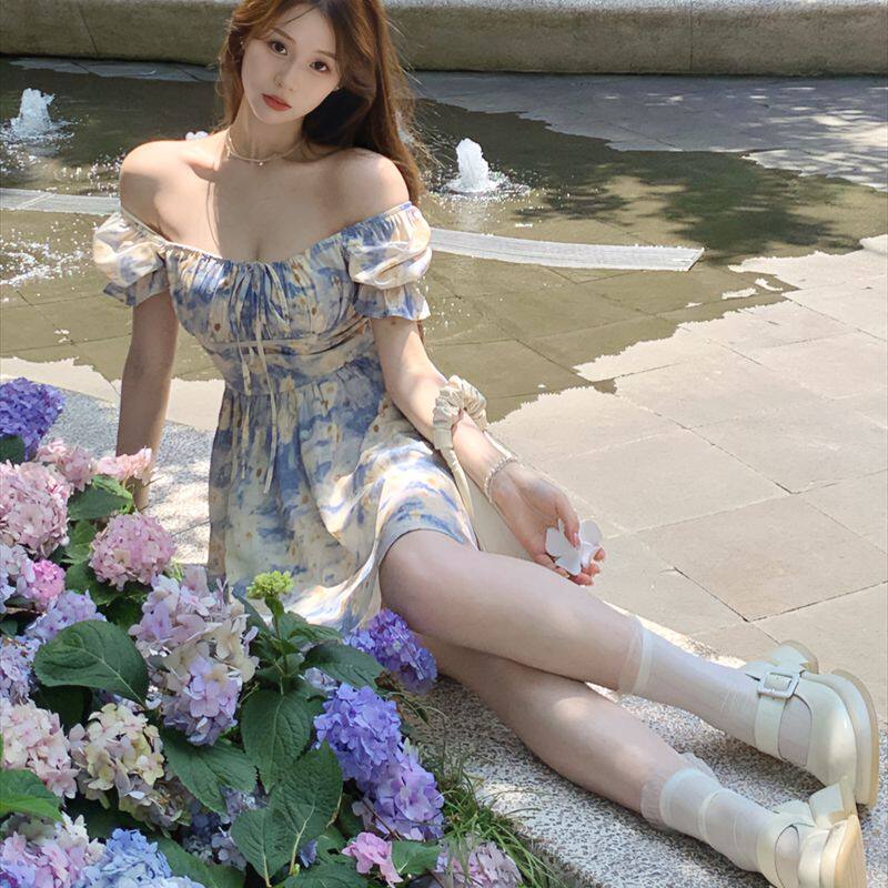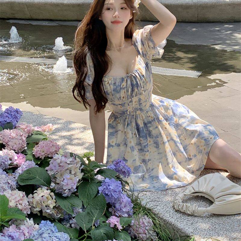 微胖MM海边度假茶歇法式遮肚显瘦碎花连衣裙女夏季新款中长款裙子