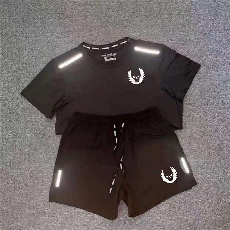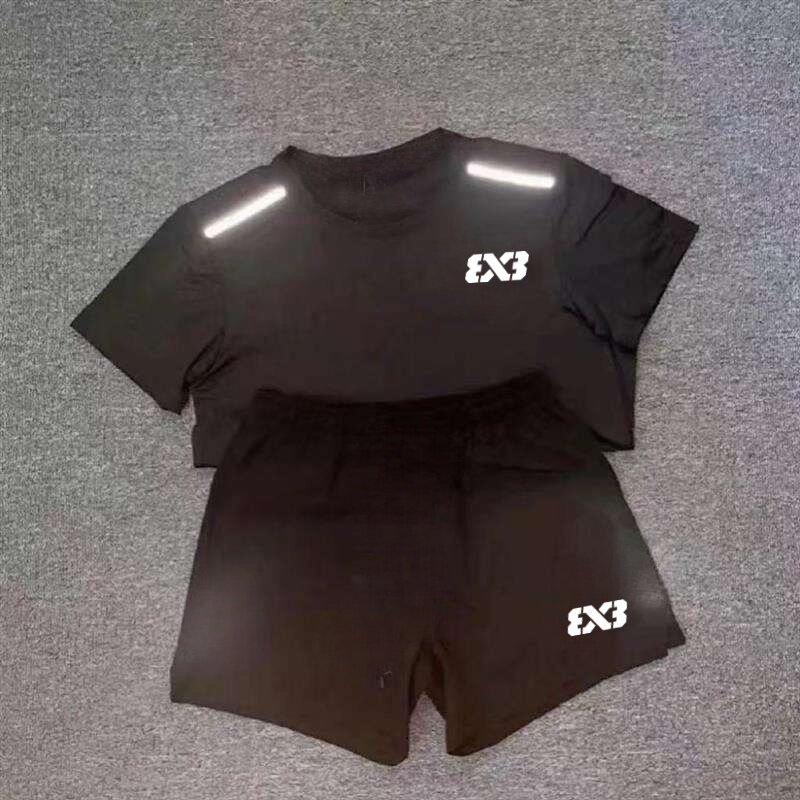 3X3反光速干短袖跑步体育生运动t恤透气短裤套装田径训练服四分裤