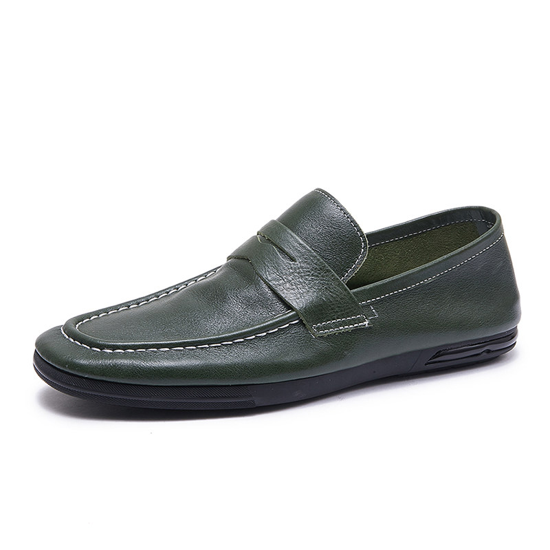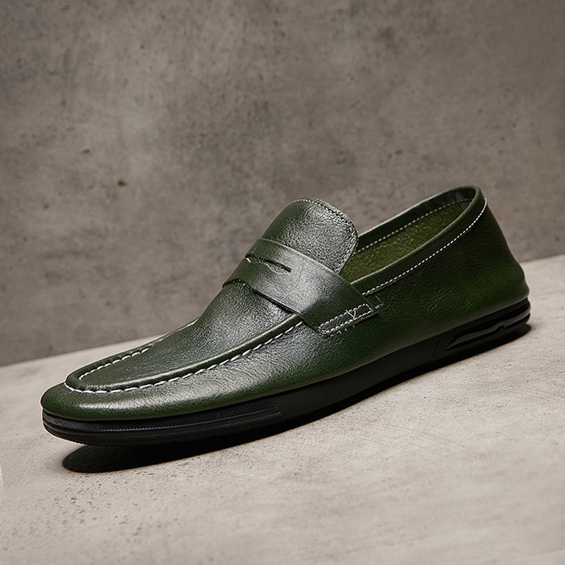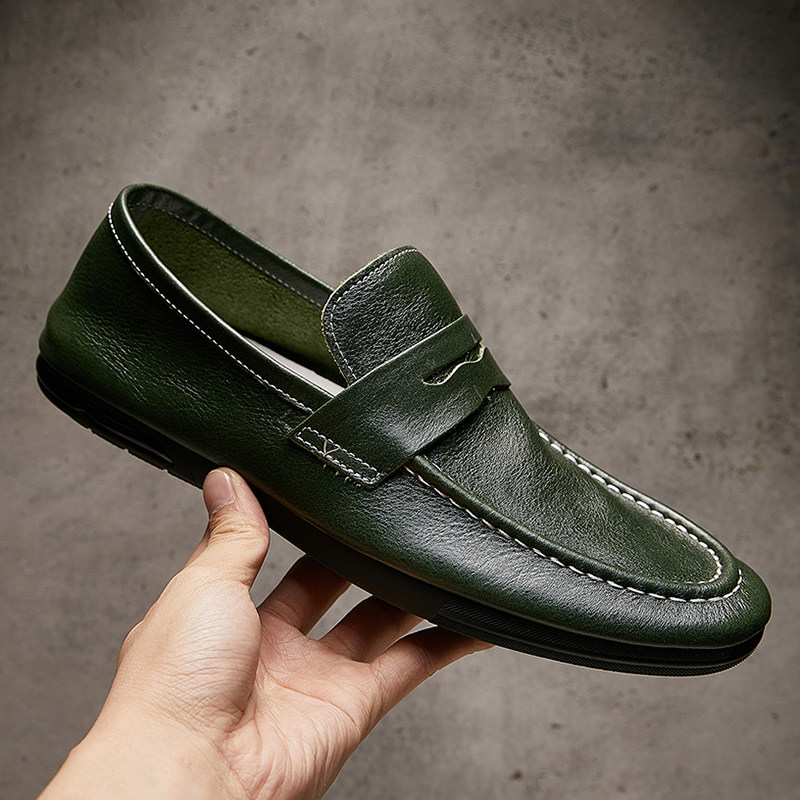 欧洲站夏季新款乐福鞋男真皮透气时尚套脚懒人鞋一脚蹬驾车豆豆鞋