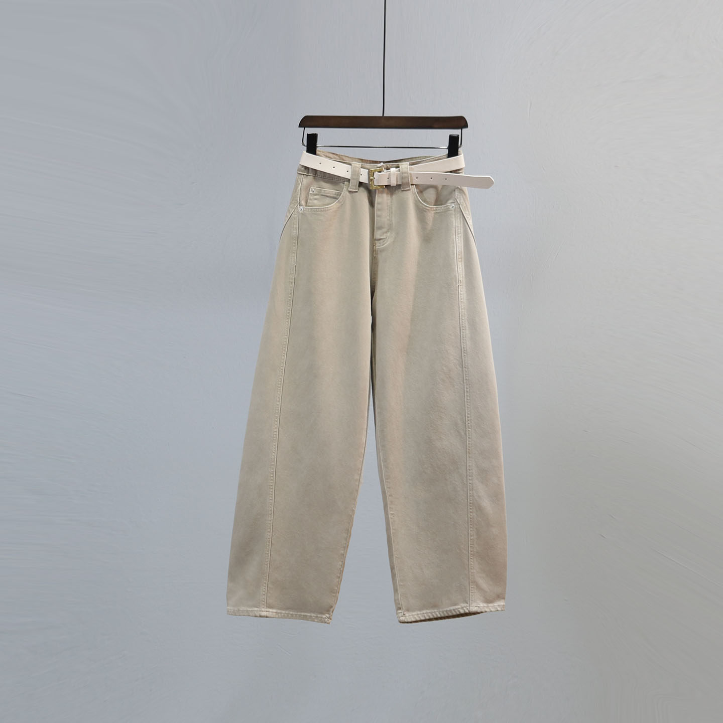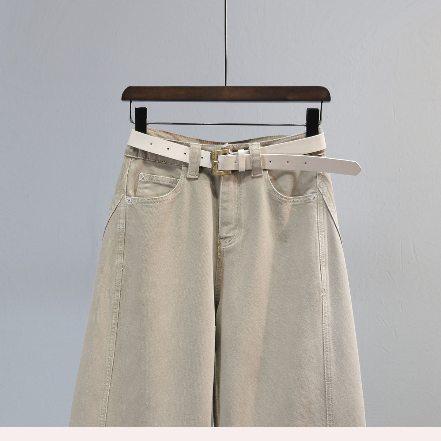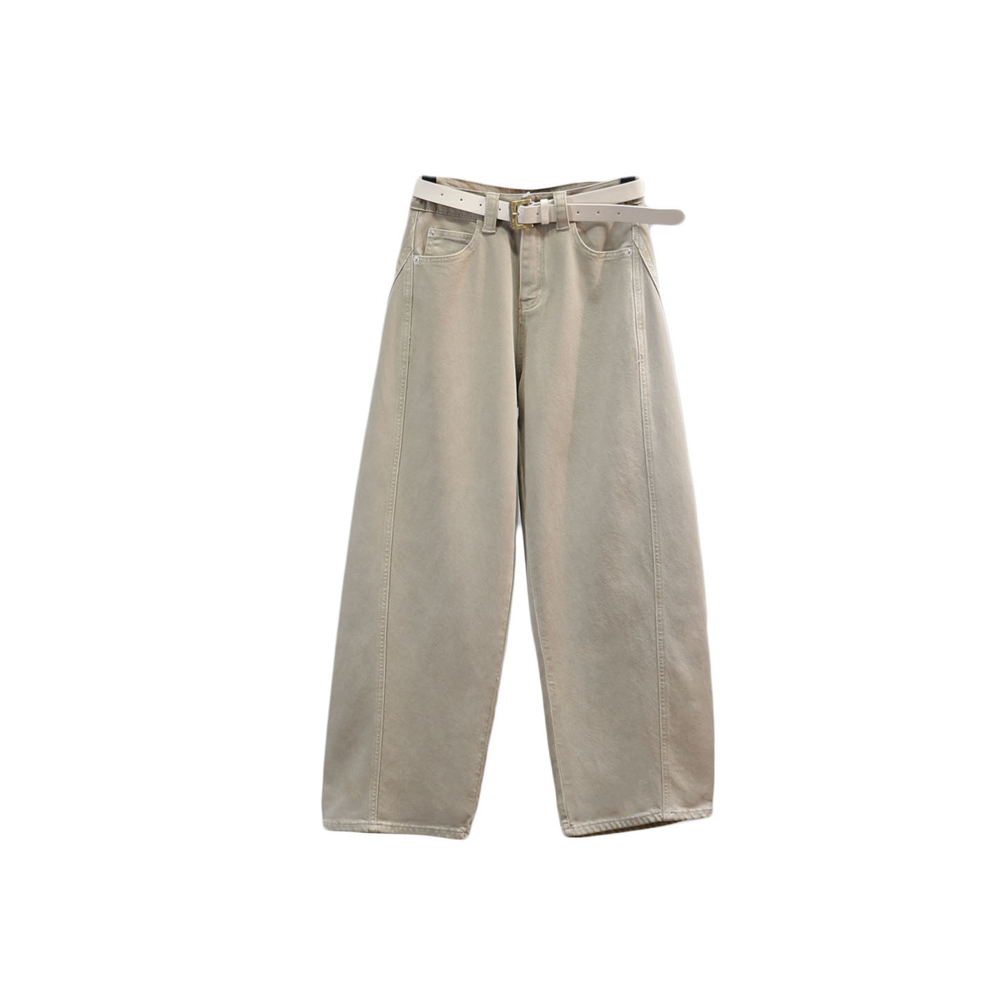 浅卡其色老爹牛仔裤女2026春夏季新款高腰显瘦宽松休闲阔腿弯刀裤