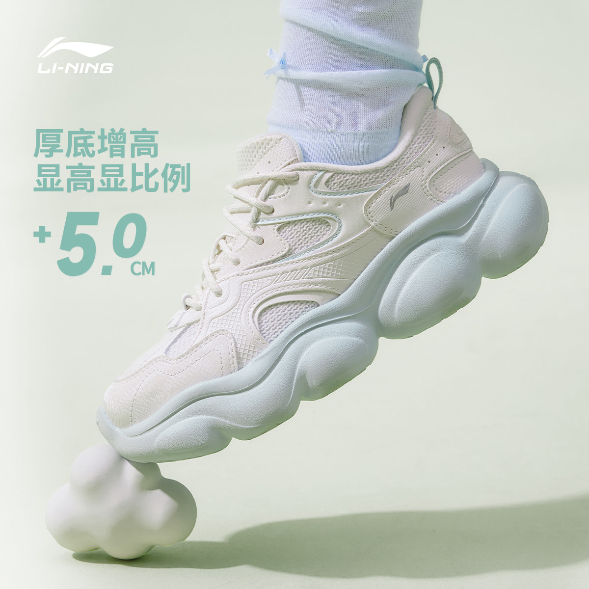 李宁云朵丨休闲鞋女鞋2026春夏新款复古老爹鞋厚底增高轻便运动鞋