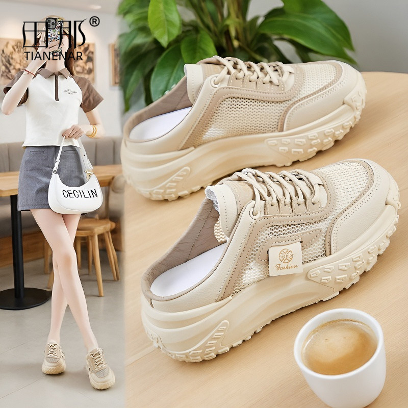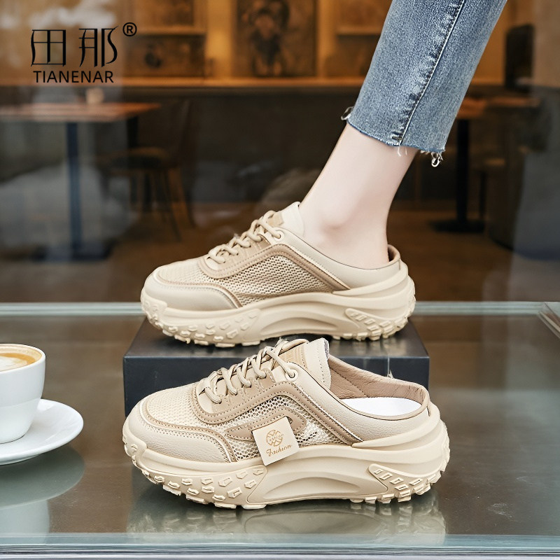 田那2026夏季新款厚底半拖休闲鞋女鞋网面透气懒人外穿凉包头拖鞋
