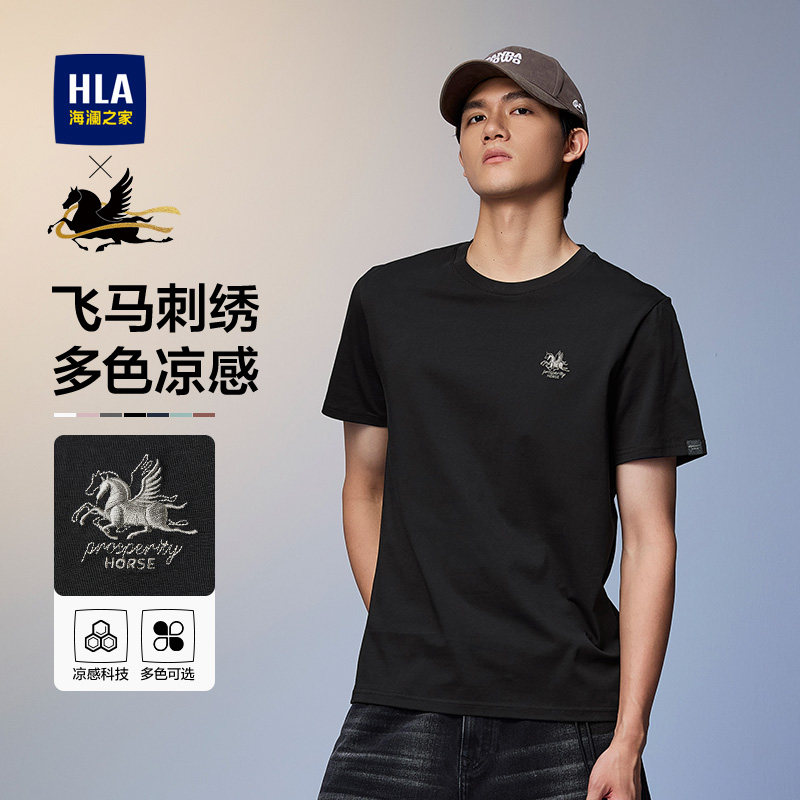 HLA海澜之家敦煌短袖T恤26春夏新款凉感刺绣马踏祥云白色短t男女