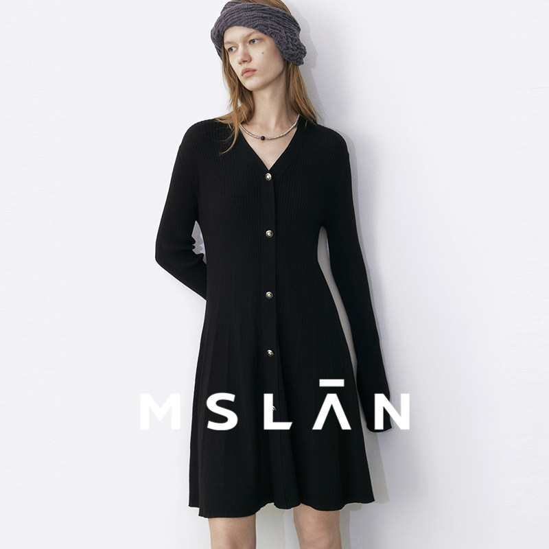 MSLAN温柔内搭针织裙气质V领坑条肌理显瘦修身短款连衣裙26春冬