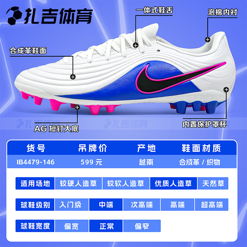 扎吉体育耐克Tiempo传奇11中端短钉AG人草成人男足球鞋IB4479-146