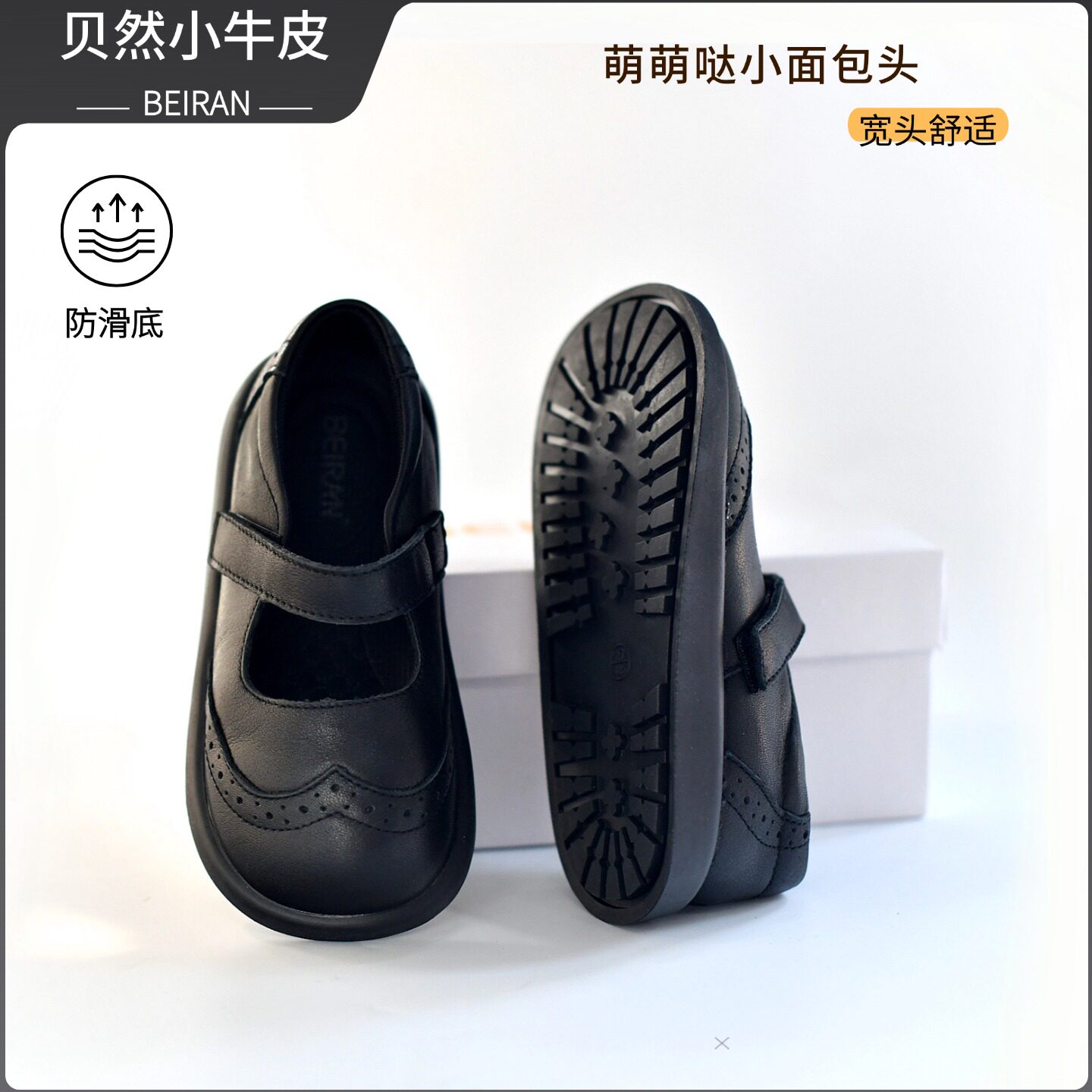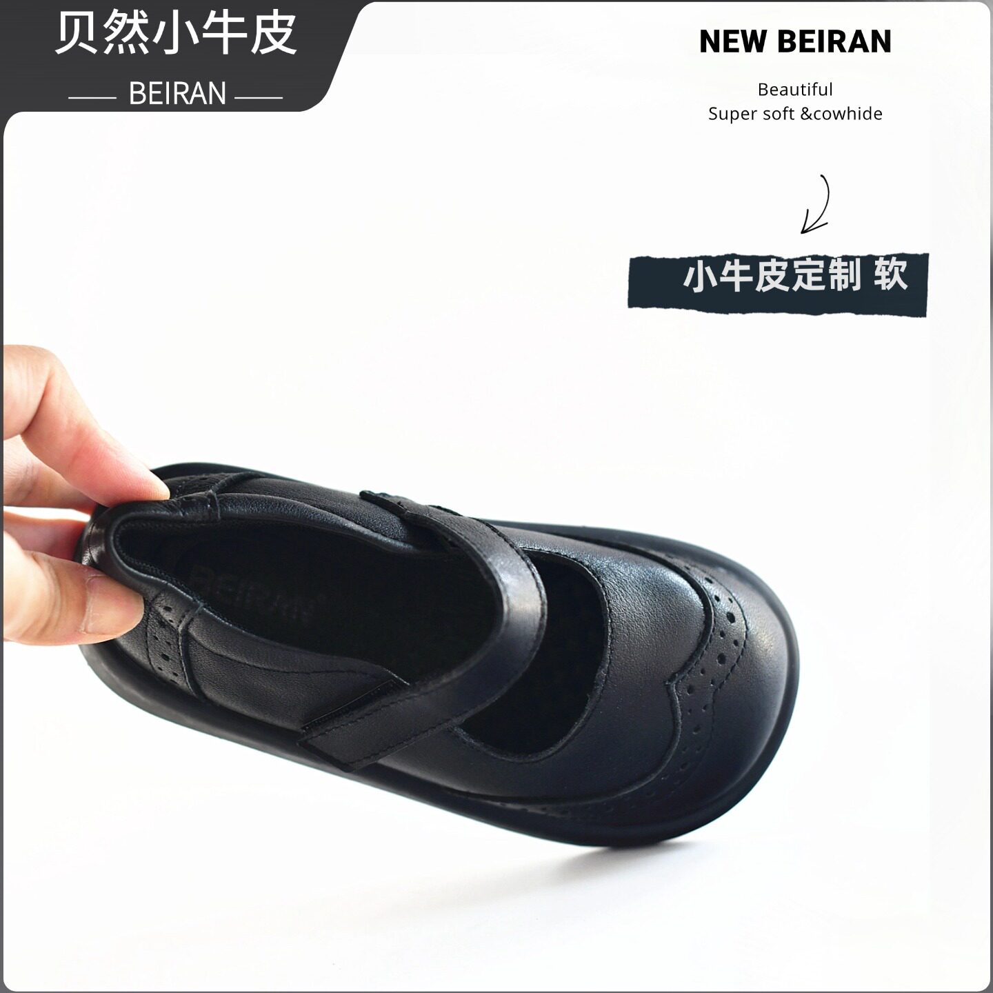 贝然童鞋女童真皮皮鞋儿童公主鞋女宝宝黑色小皮鞋羊皮里演出鞋子