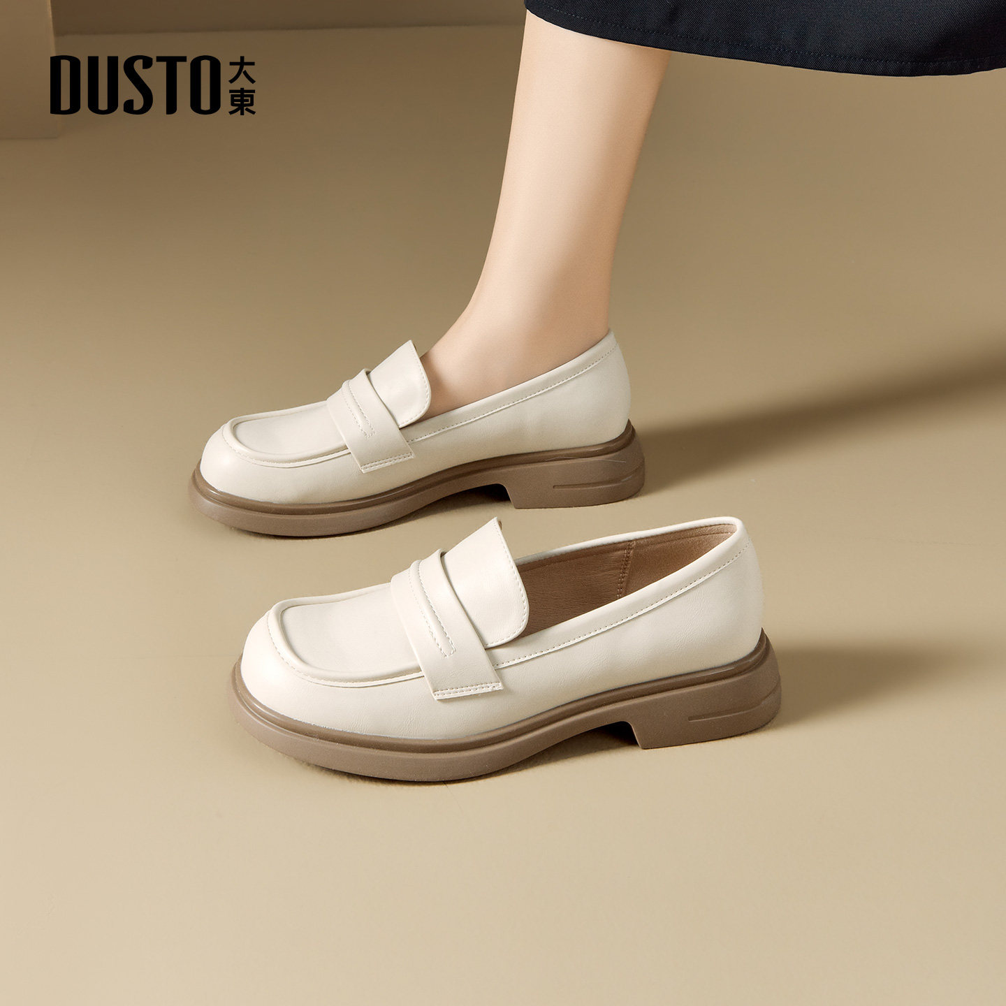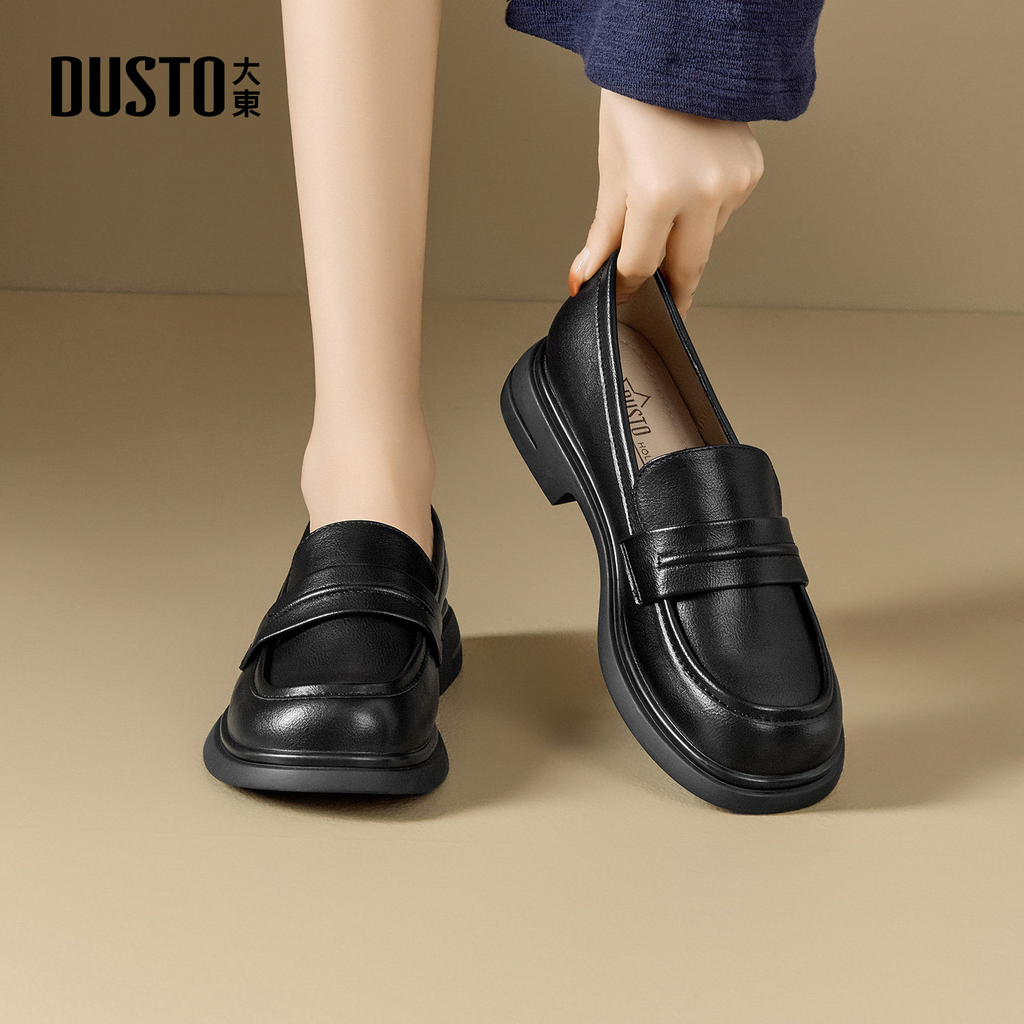 大东官方英伦乐福鞋女2026新款春季通勤女鞋jk鞋一脚蹬黑色小皮鞋