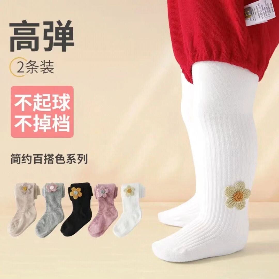 儿童连裤袜春秋薄款女童打底袜白色纯棉外穿连脚宝宝打底裤配裙子