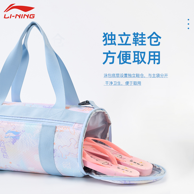 李宁儿童游泳收纳包干湿分离女童防水运动女童包学生专用训练装备