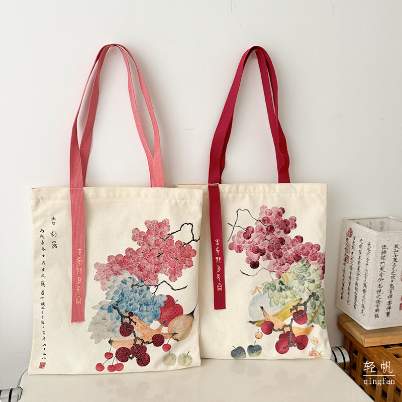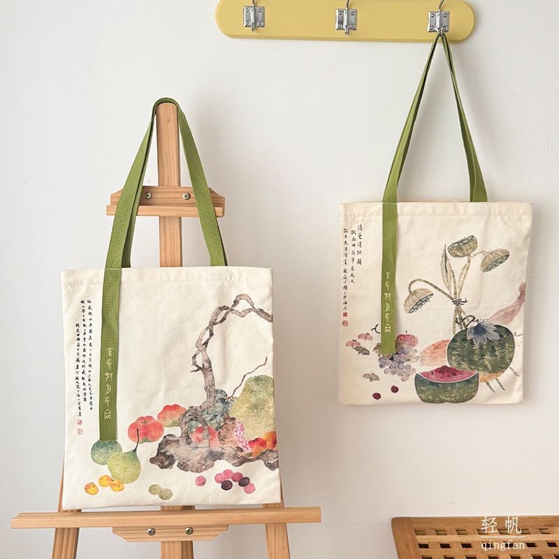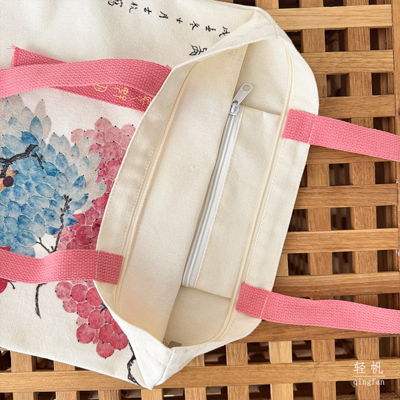 2025年中国风新中式文艺通勤帆布包大容量手提袋拉链单肩学生书袋