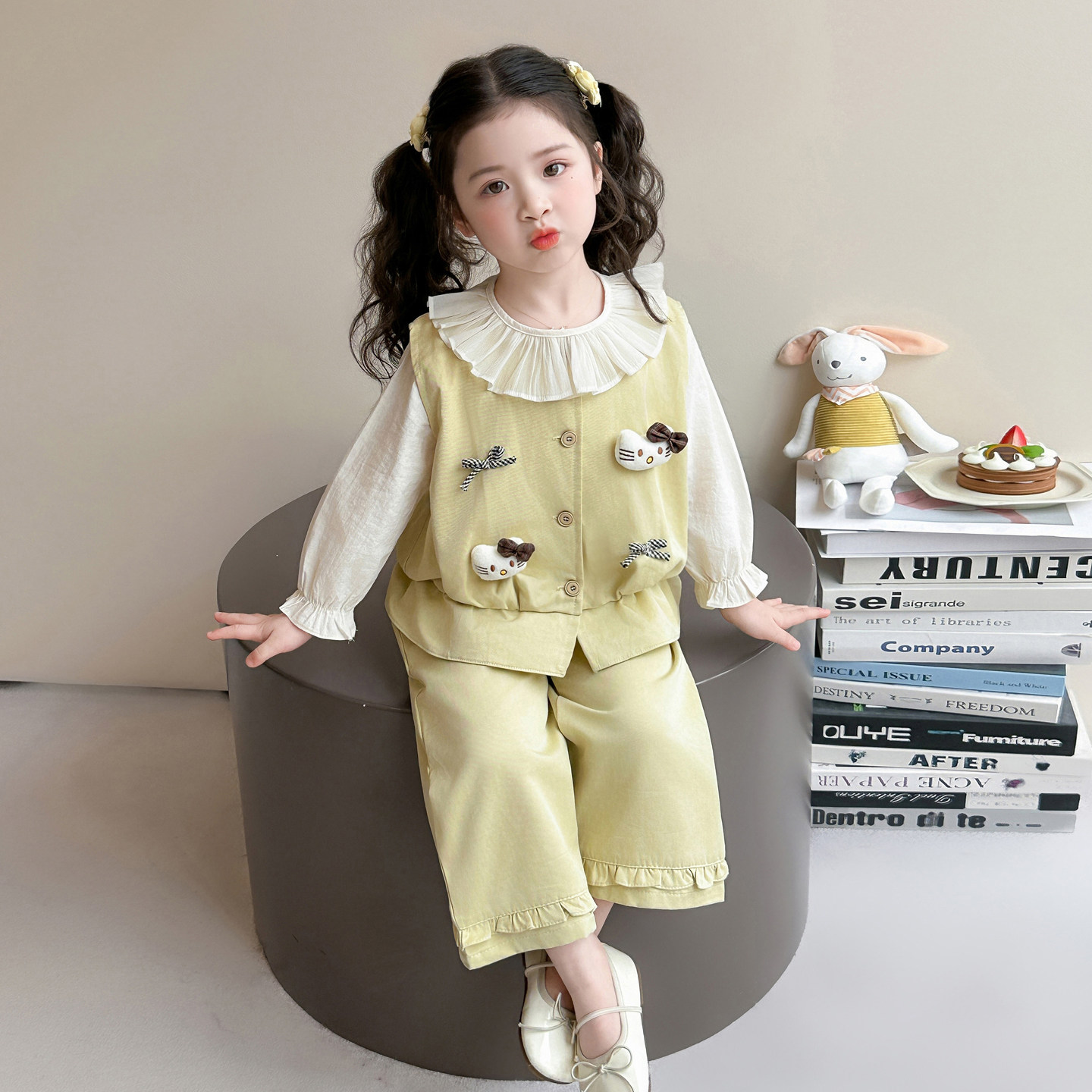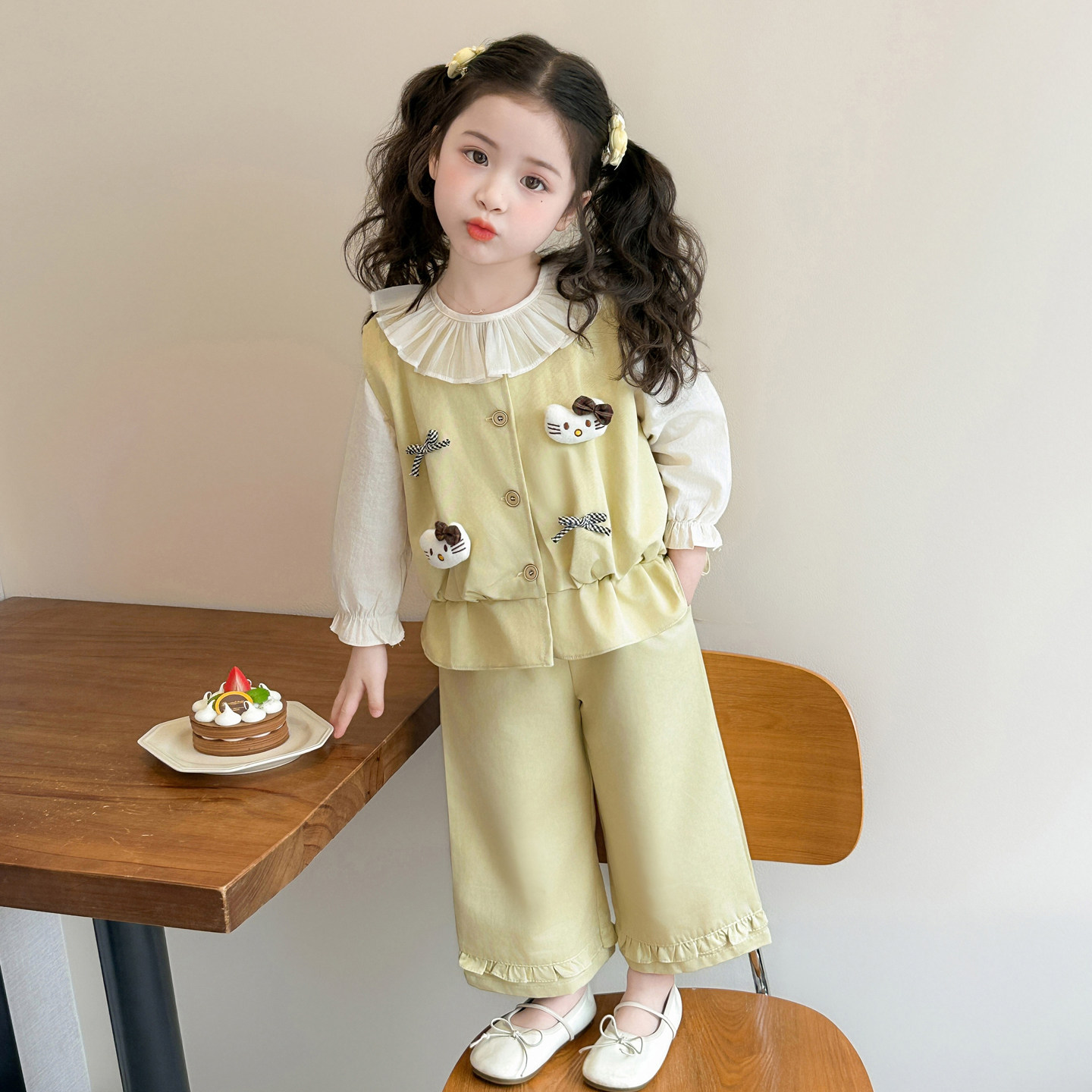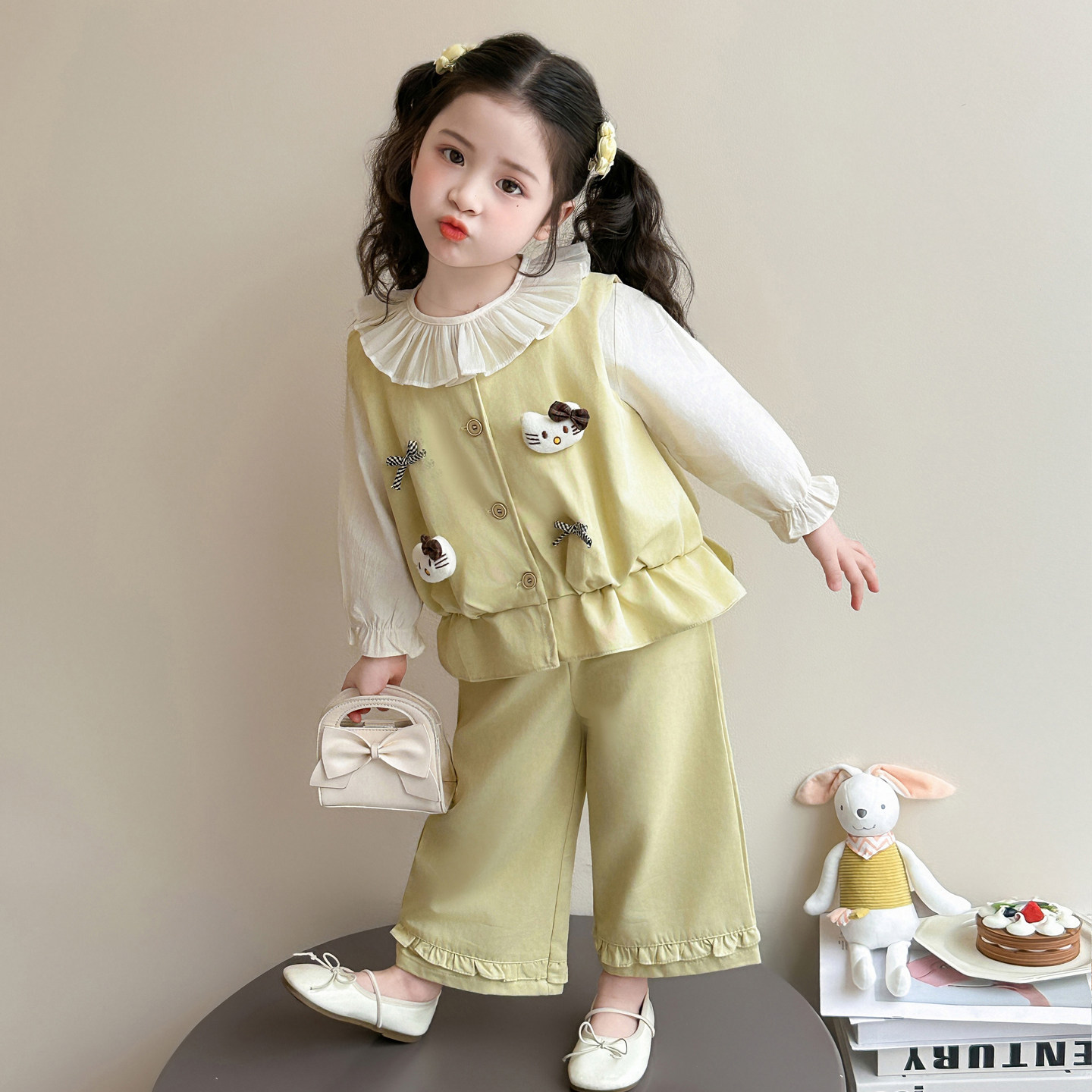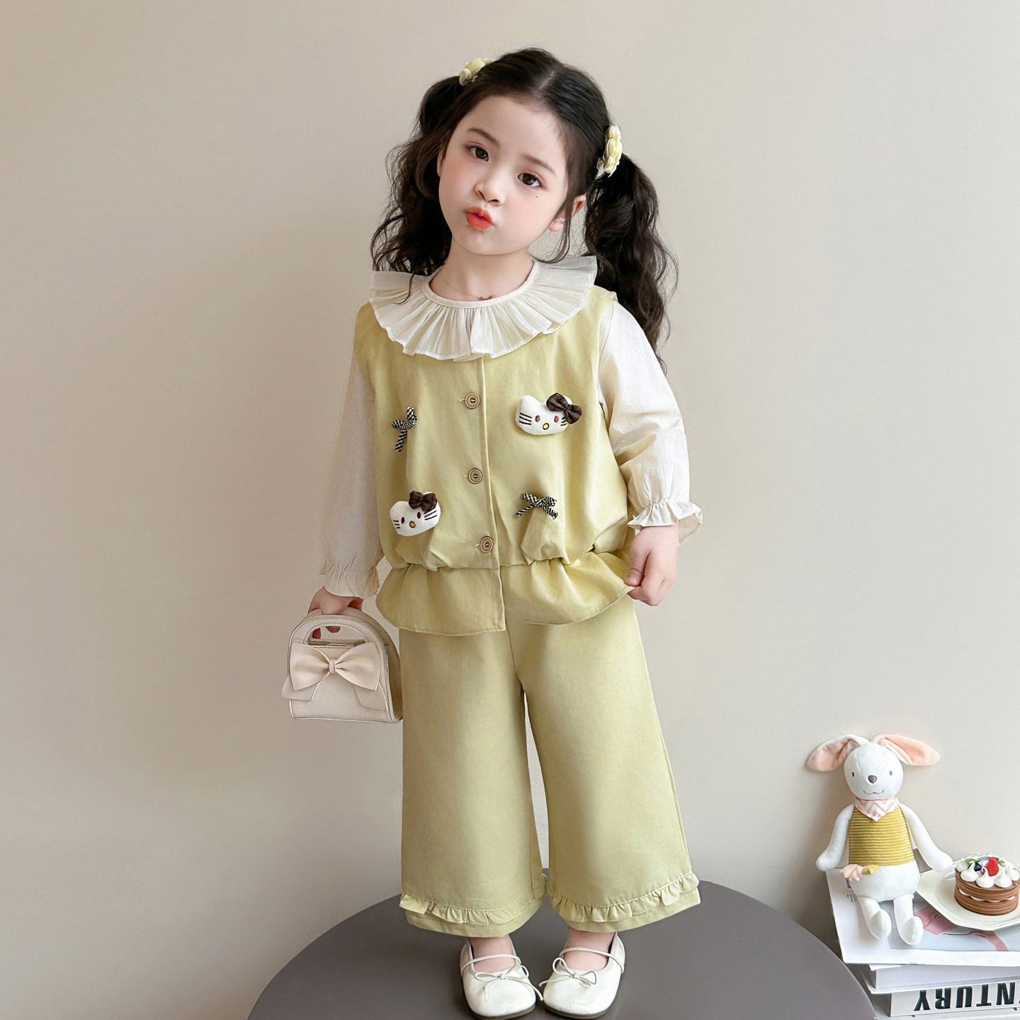 女童春秋猫咪套装2026新款洋气时髦儿童女宝宝春季春装早春三件套