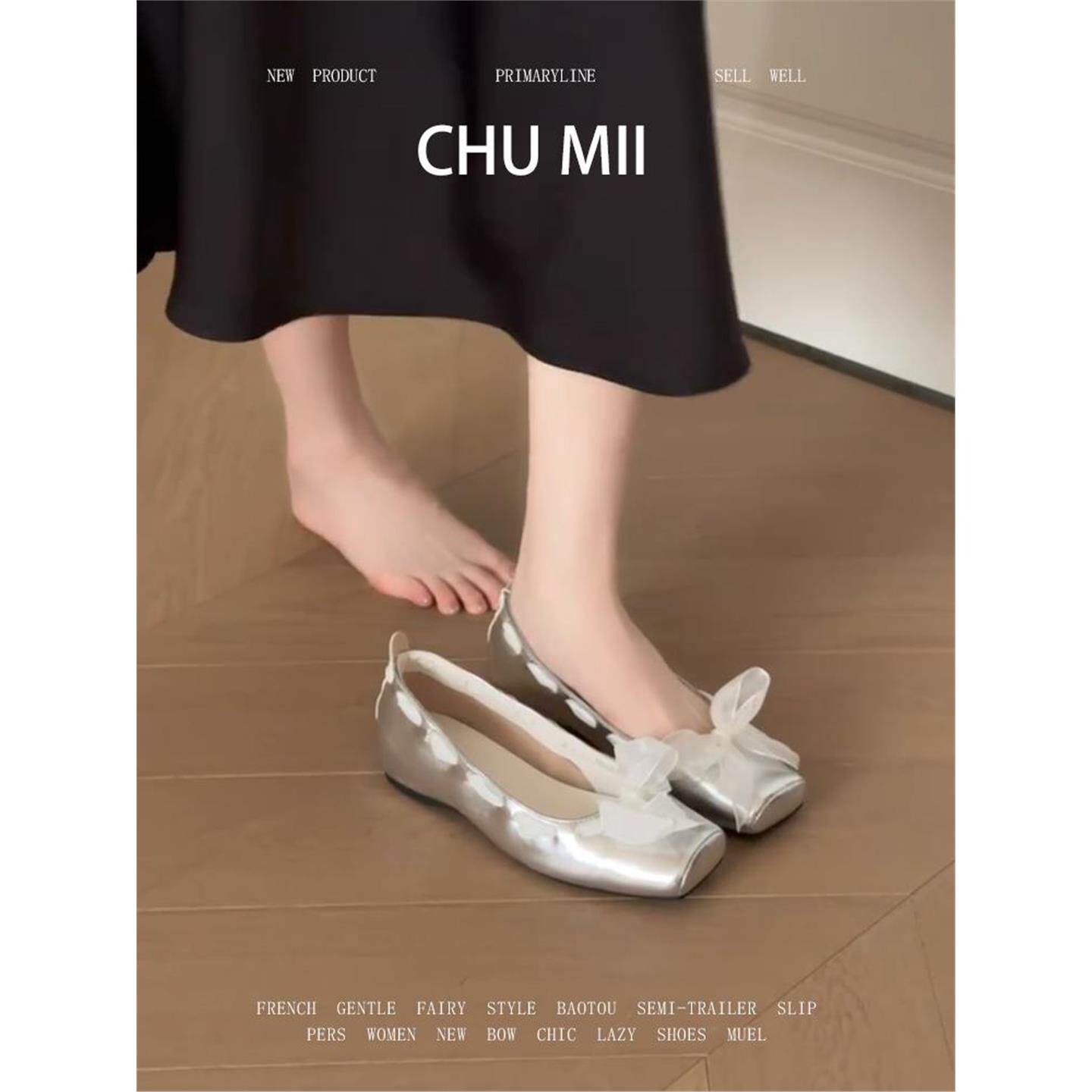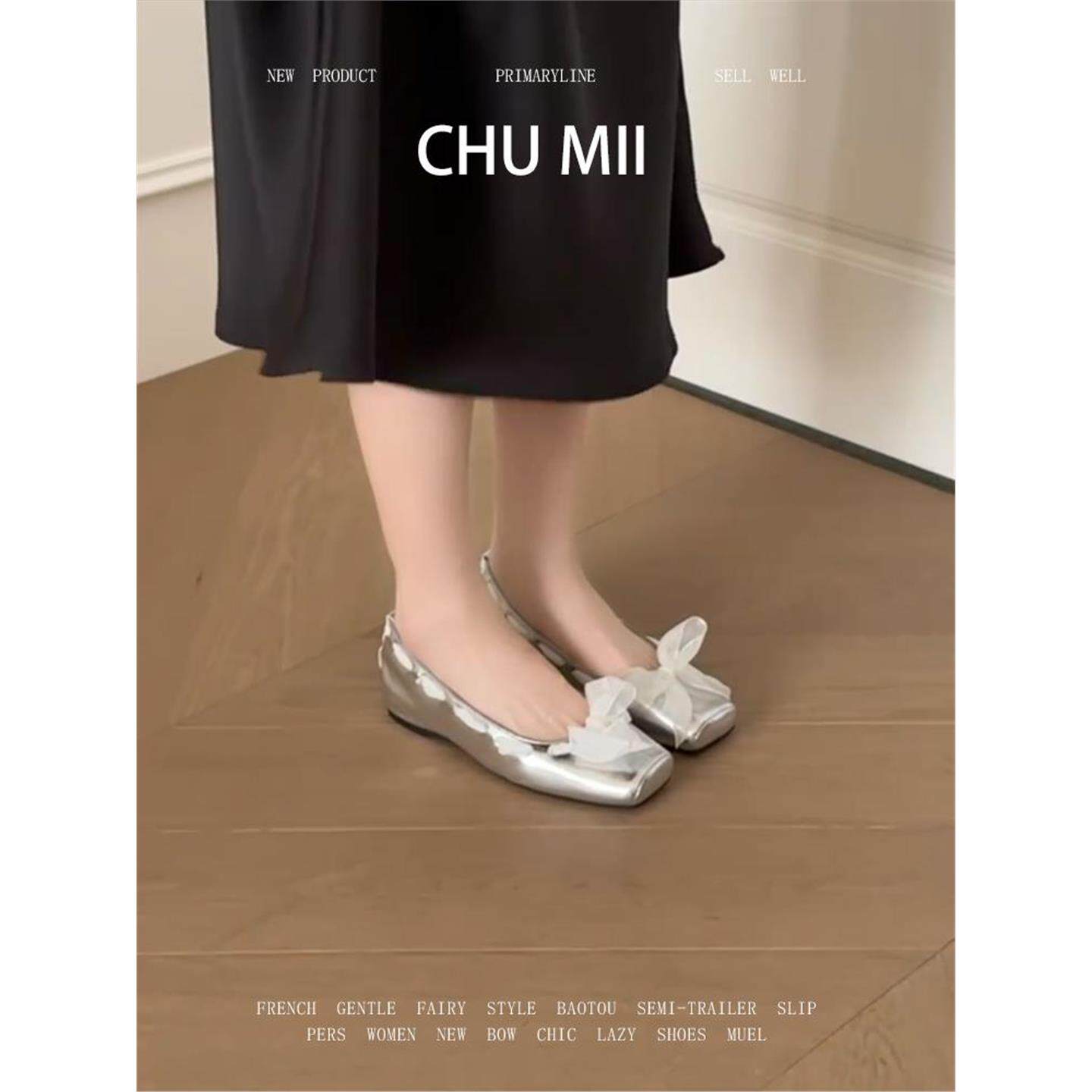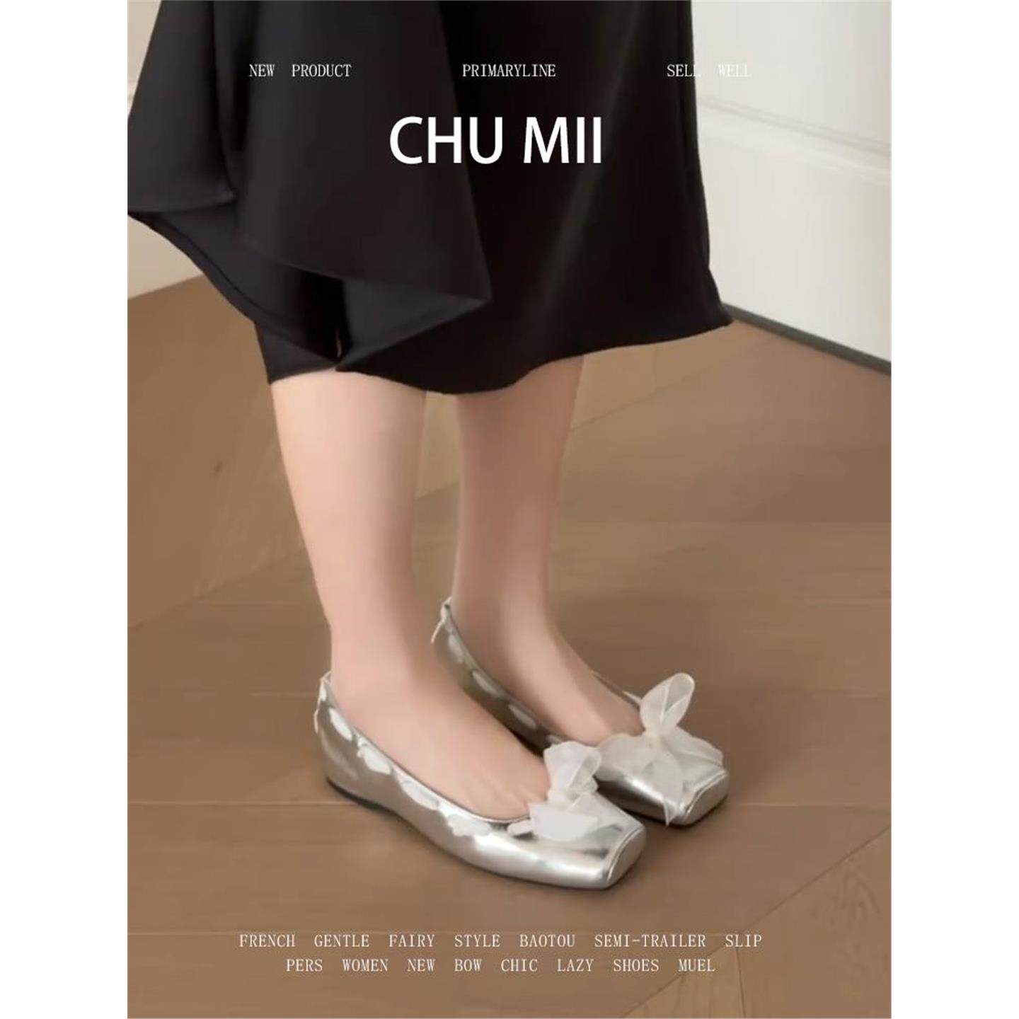 羊皮版~法式银色平底单鞋女方头内增高玛丽珍鞋芭蕾舞风软底瓢鞋