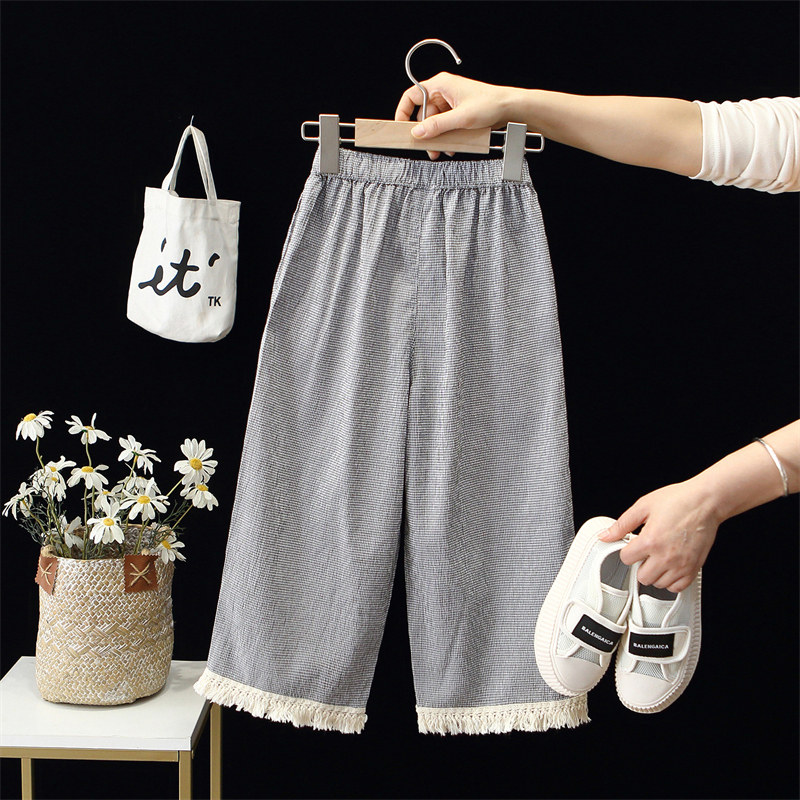 女童裤子2025春夏季新款蕾丝花边阔腿裤儿童洋气棉麻直筒裤时髦