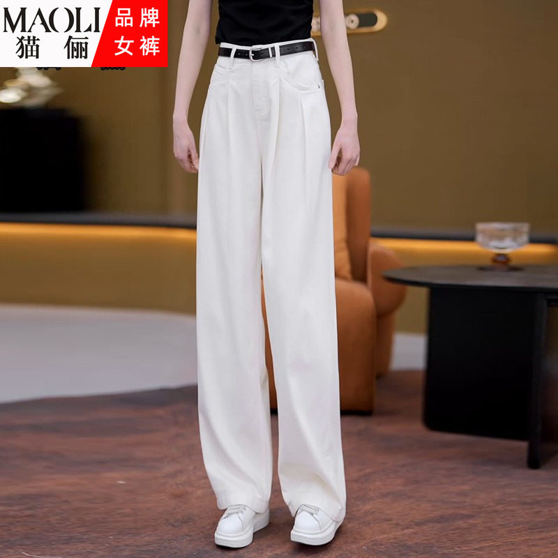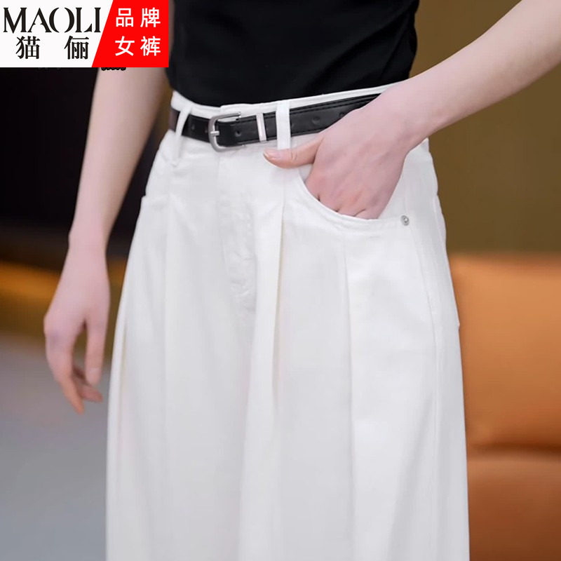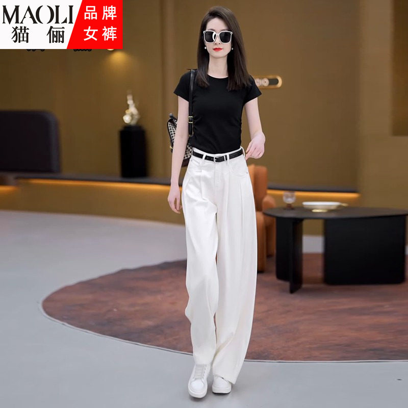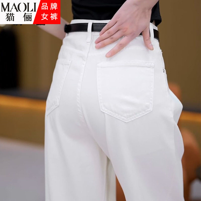 猫俪白色宽松直筒牛仔裤女春夏季2026年新款薄款高腰窄版阔腿裤子