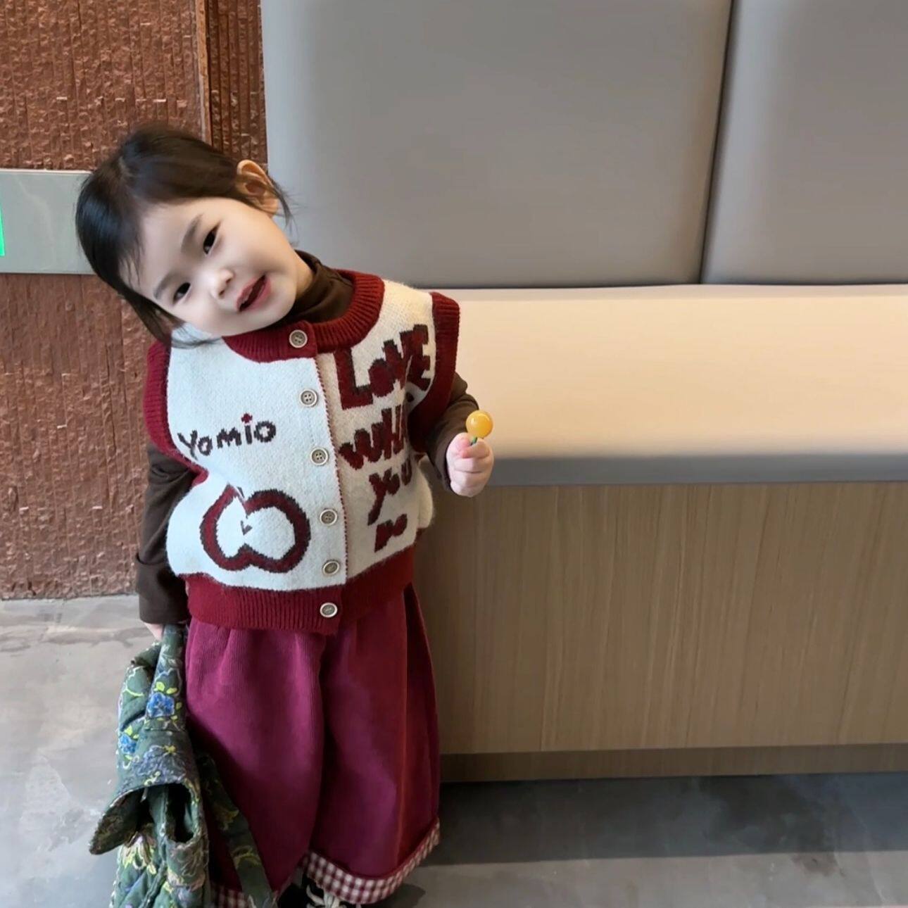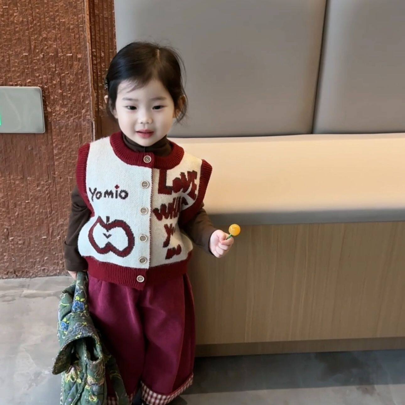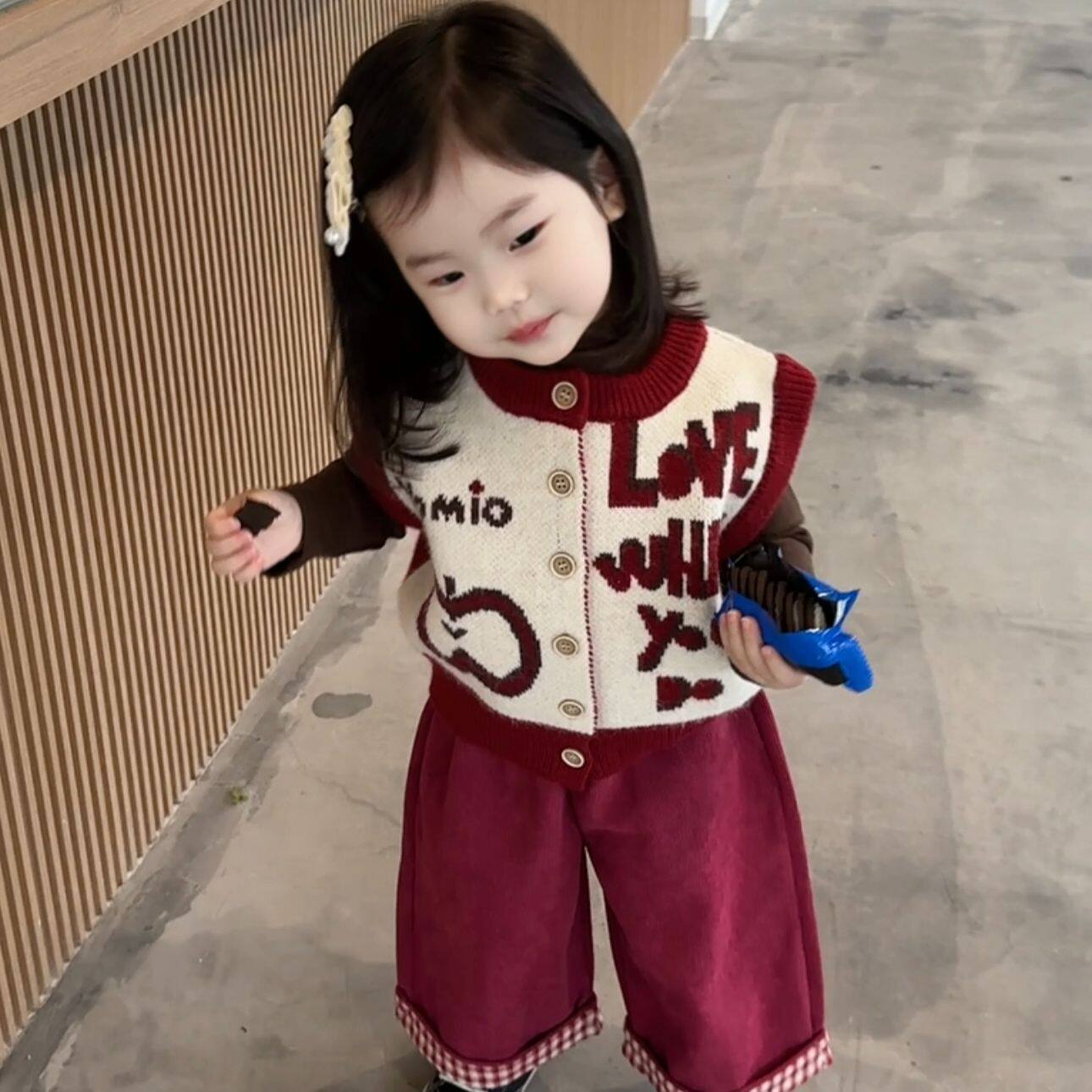 女童套装2026春秋新款儿童毛衣马甲韩版女宝背心休闲阔腿裤两件套