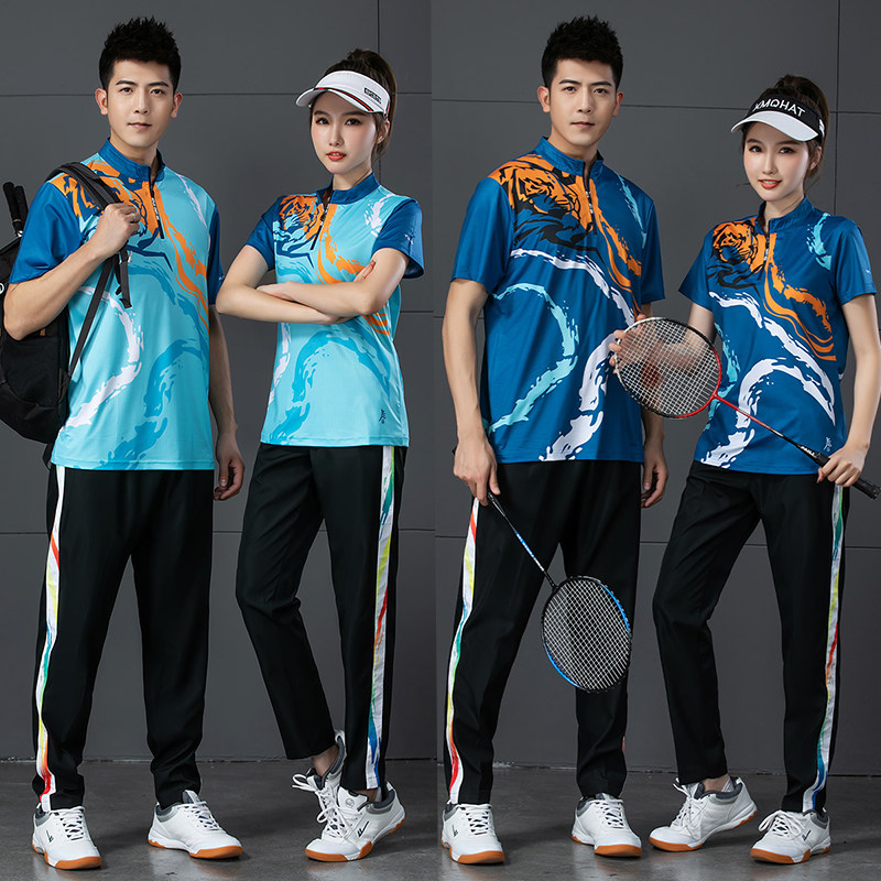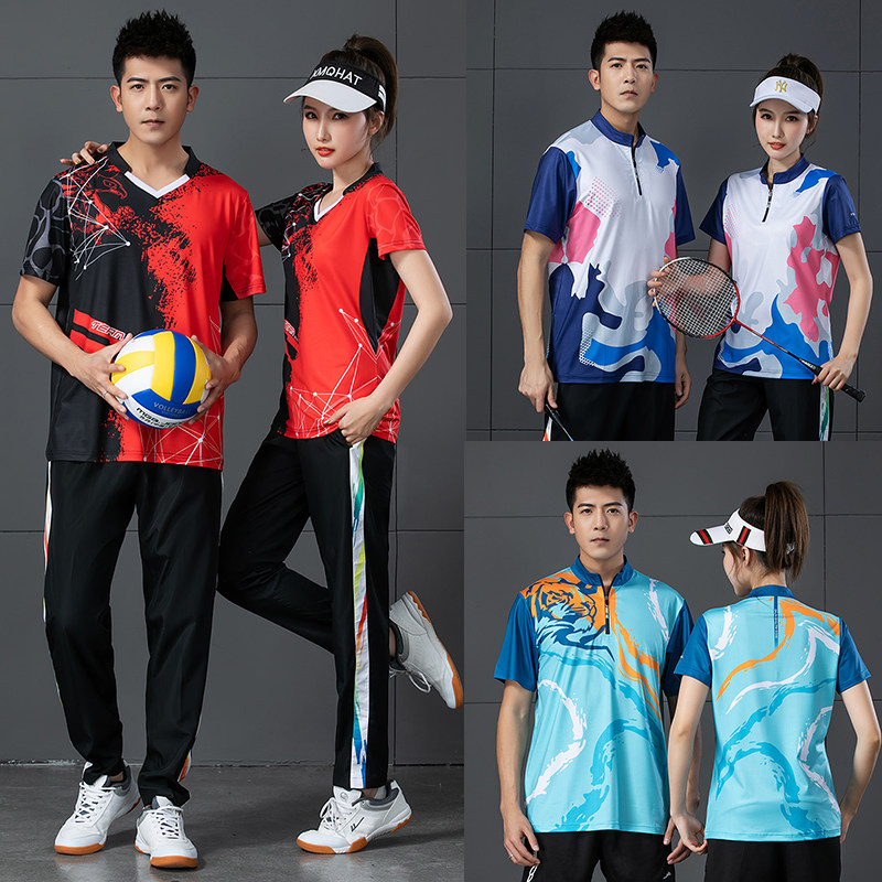 新款羽毛球服套装男女速干短袖长裤气排球网球乒乓球比赛训练队服