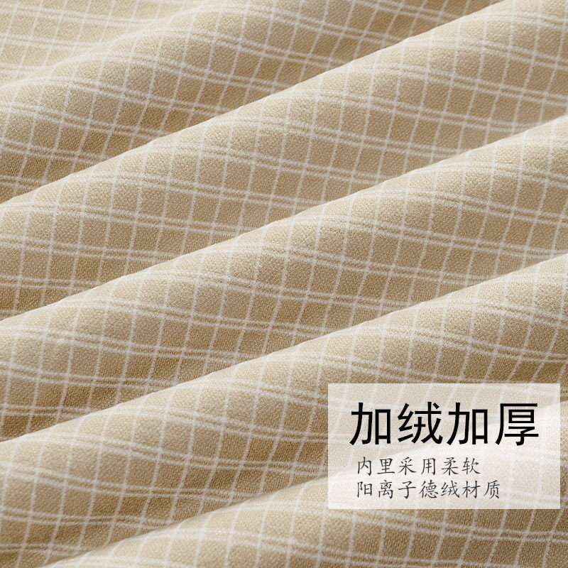 申本韩系简约条纹德绒睡衣女款秋冬季加绒加厚长袖上衣家居服大码