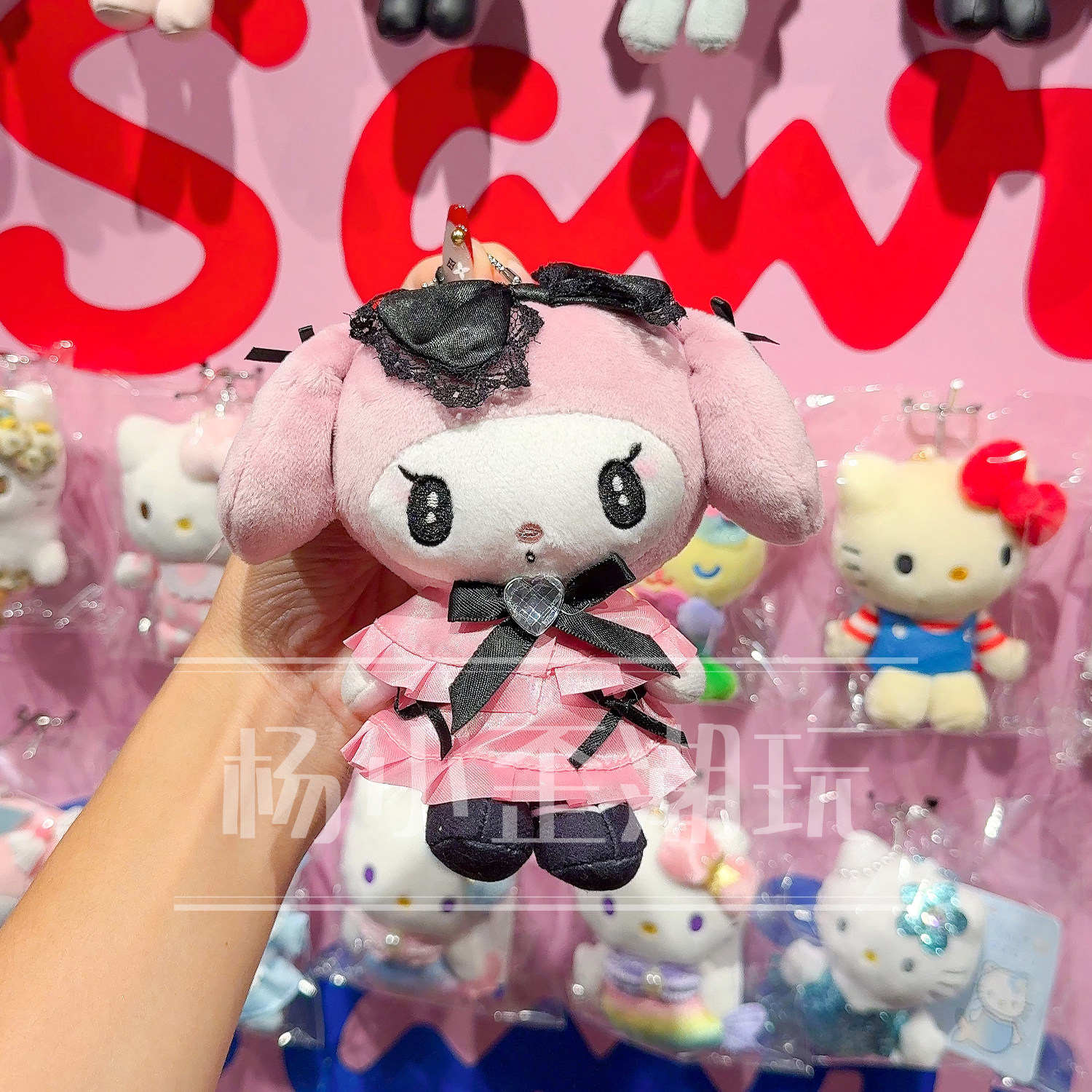 正品日本三丽鸥hellokitty猫蕾丝女仆美乐蒂毛绒包包小挂件斜挎包