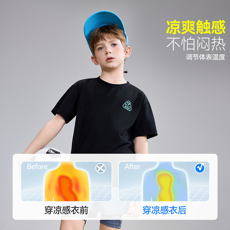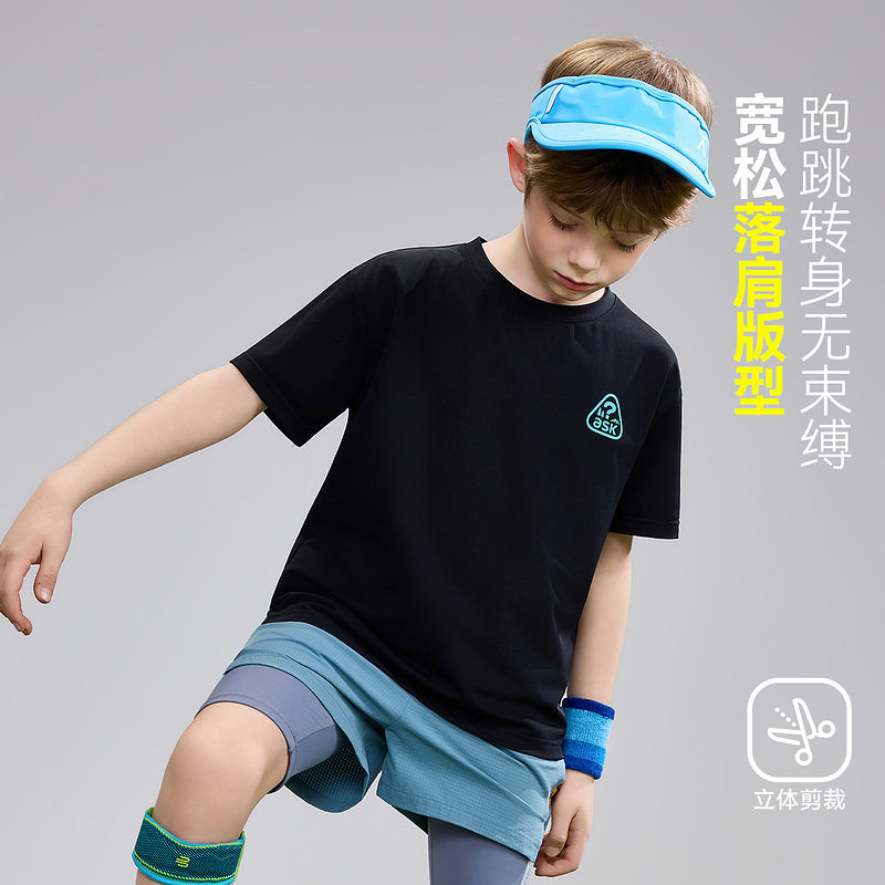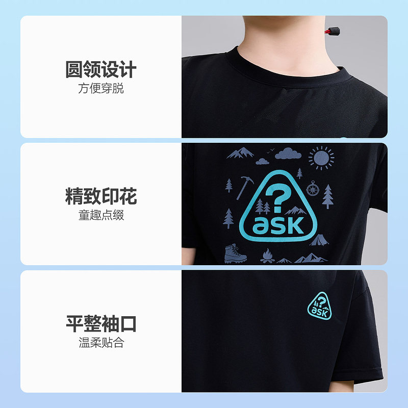 ask儿童T恤2026夏季新款男童休闲凉感短袖中大童户外运动上衣