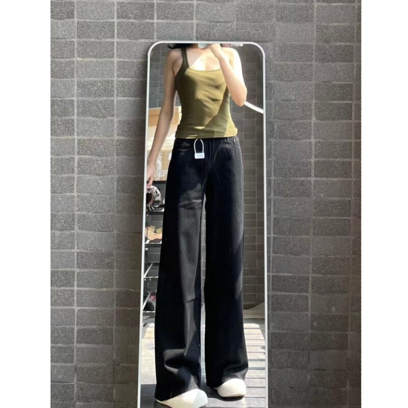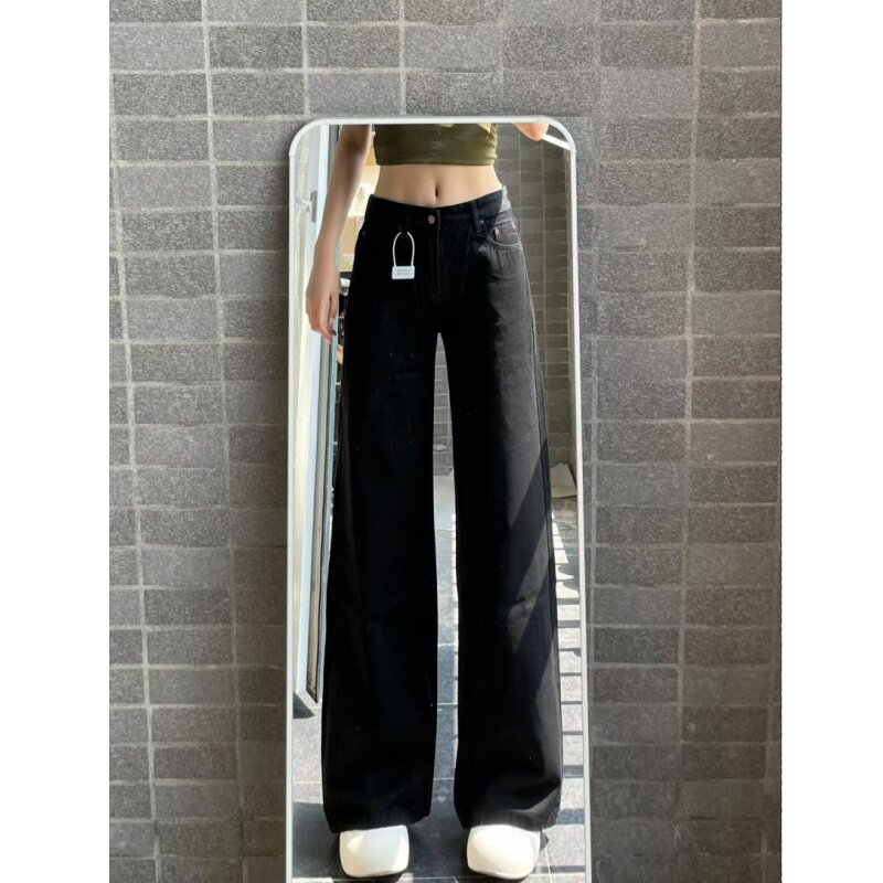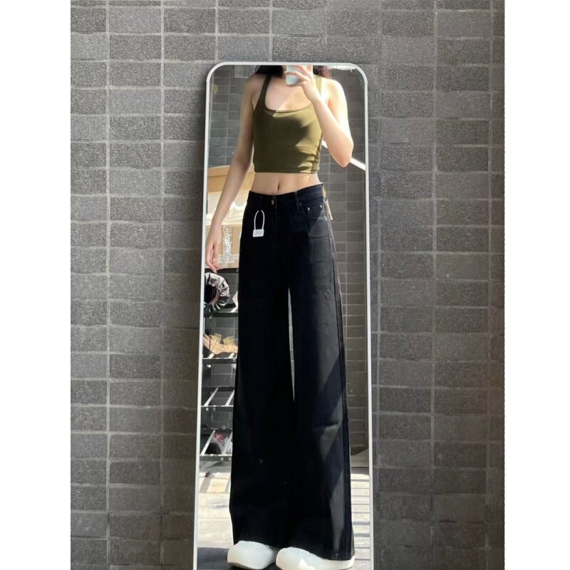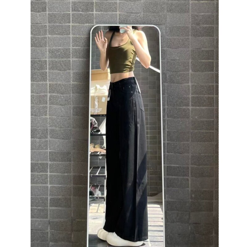 小个子一米五欧美风复古黑色直筒牛仔裤女款春秋宽松高腰拖地裤子