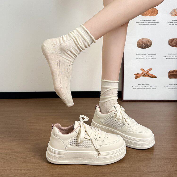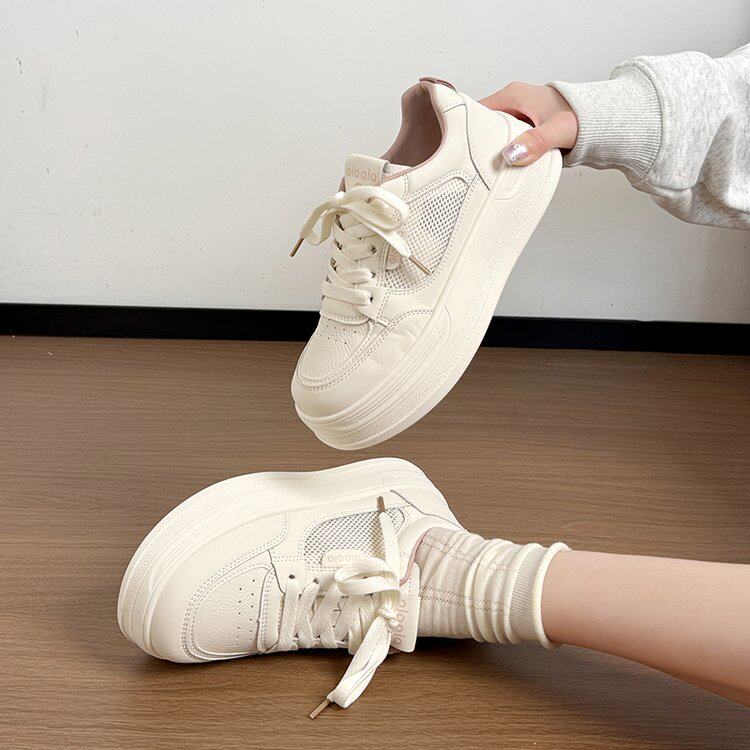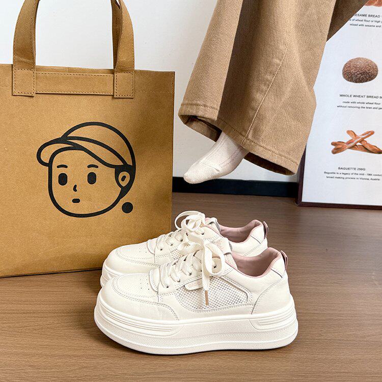 新款学生运动休闲鞋2026夏季新款系带厚底小白鞋透气网面百搭板鞋