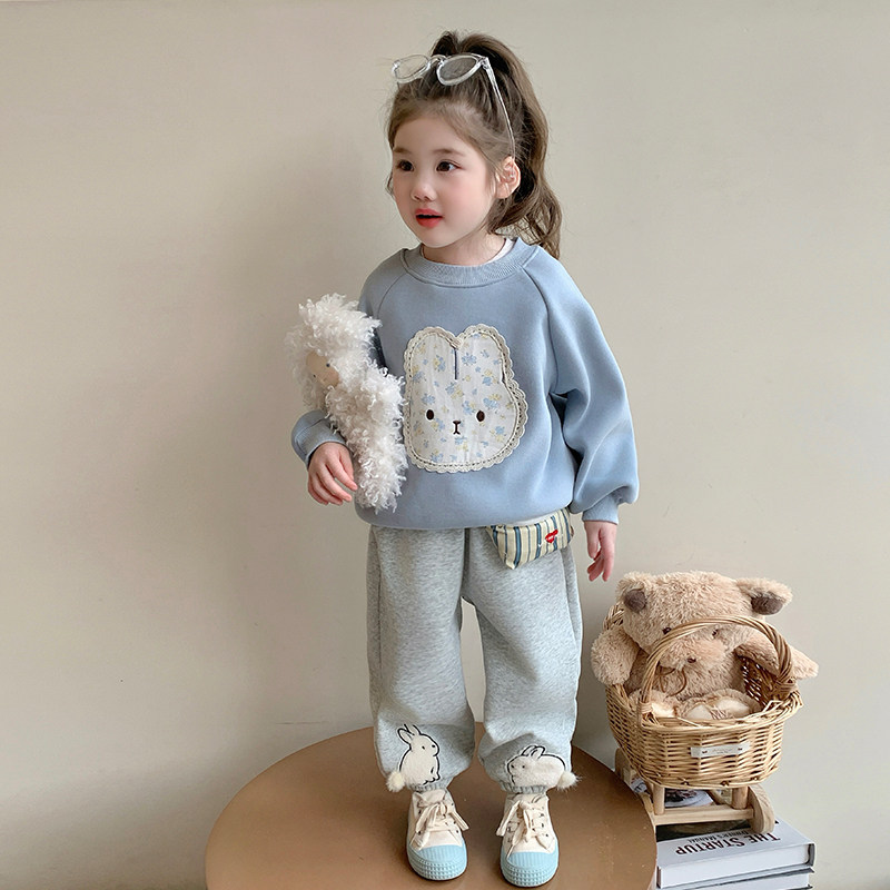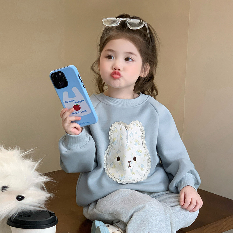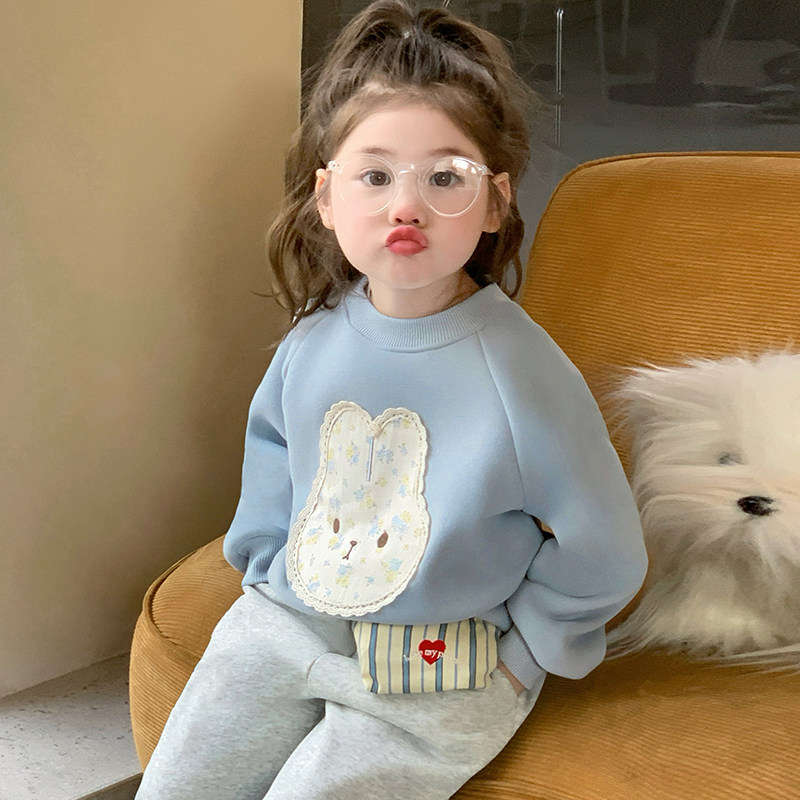 女童卫衣套装秋冬季2026新款儿童洋气时髦加绒加厚兔子运动两件套