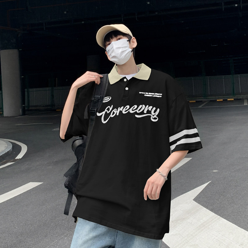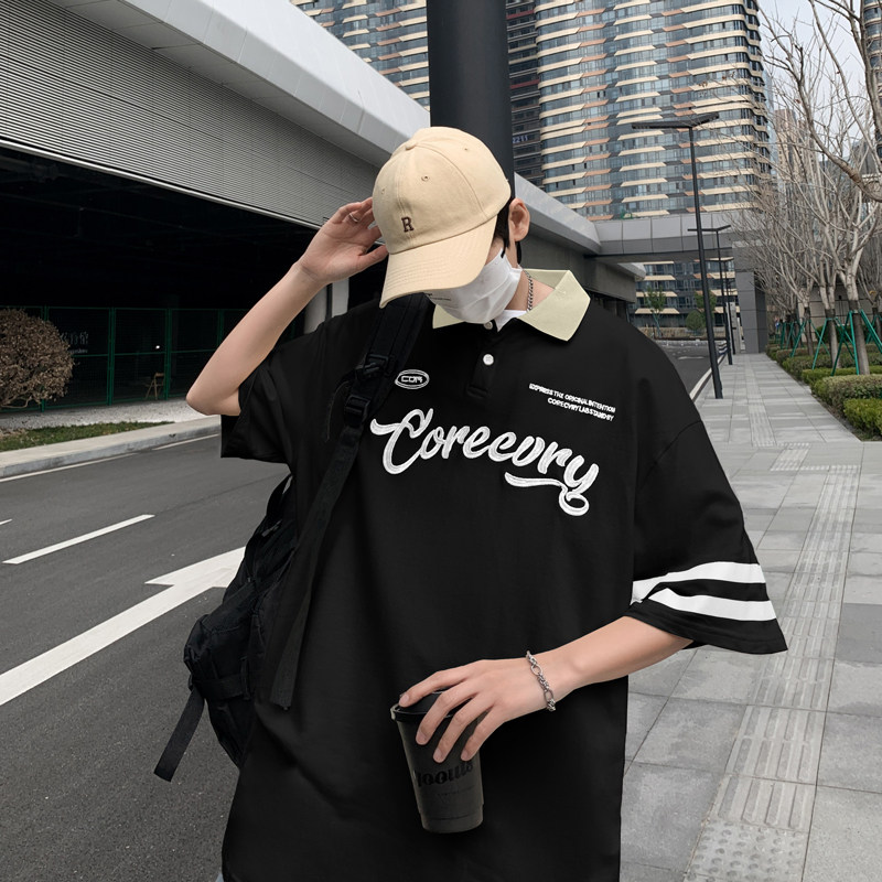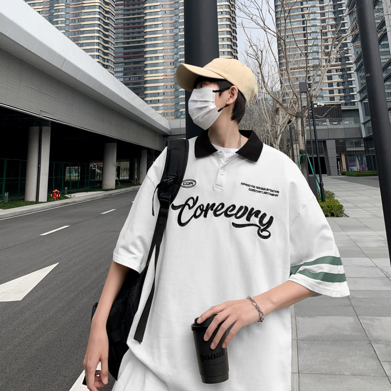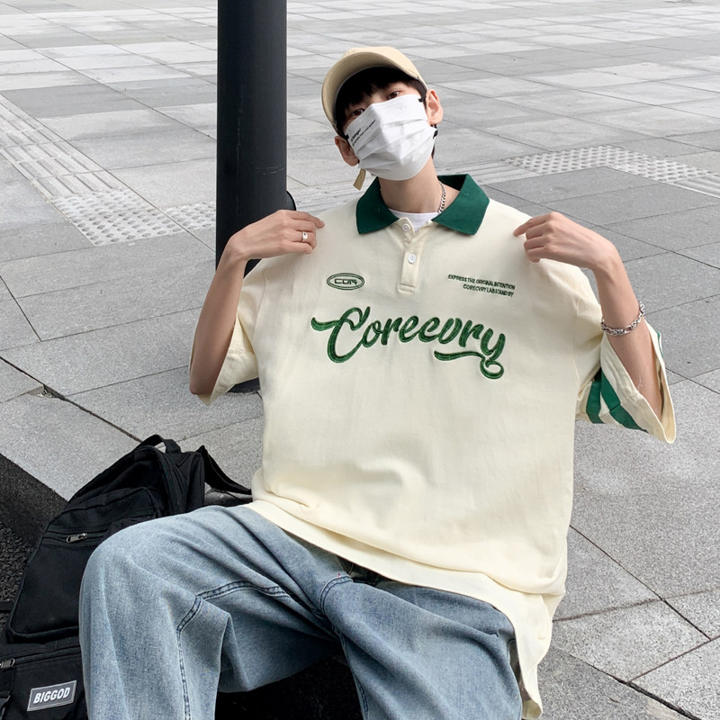 华夫格polo衫美式短袖男士夏季宽松刺绣青少年t恤衫休闲半袖体恤
