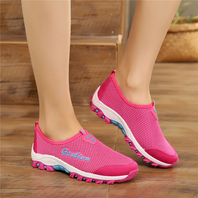 网鞋女透气网面夏季镂空网眼散步黑一脚蹬懒人夏天轻便运动妈妈鞋