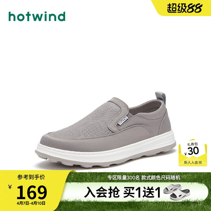 热风男鞋2026春季新款舒适布鞋时尚圆头一脚蹬轻便透气休闲鞋子男