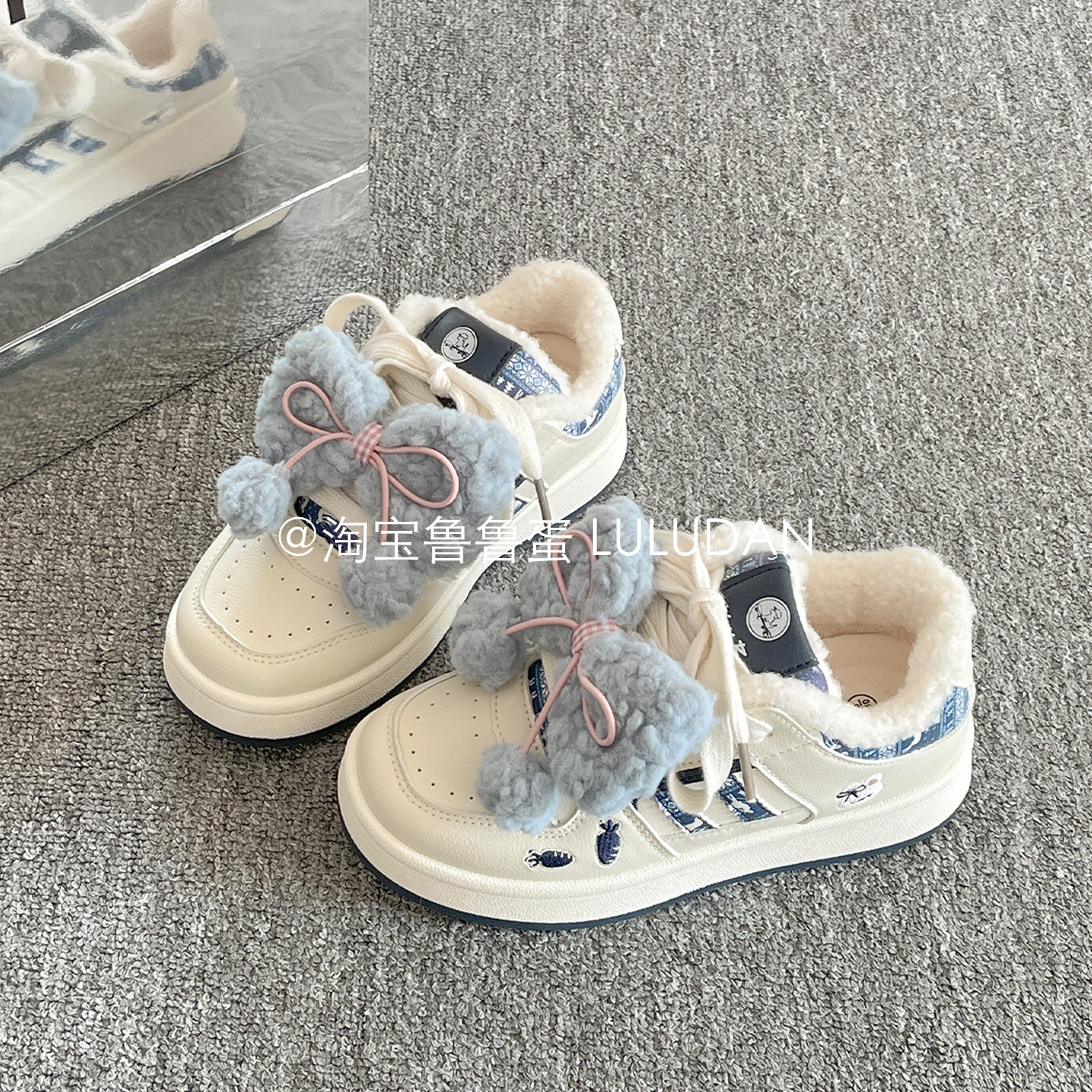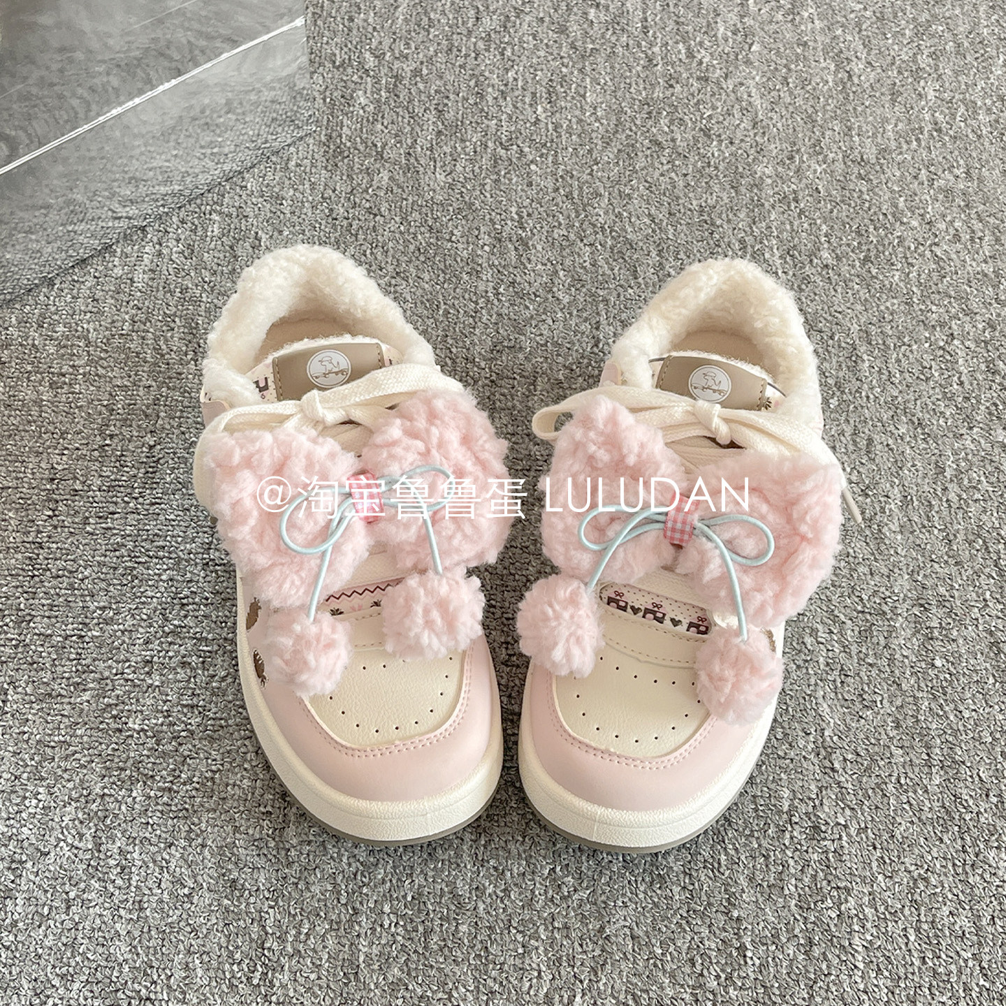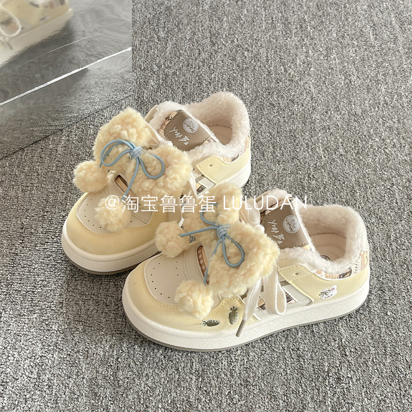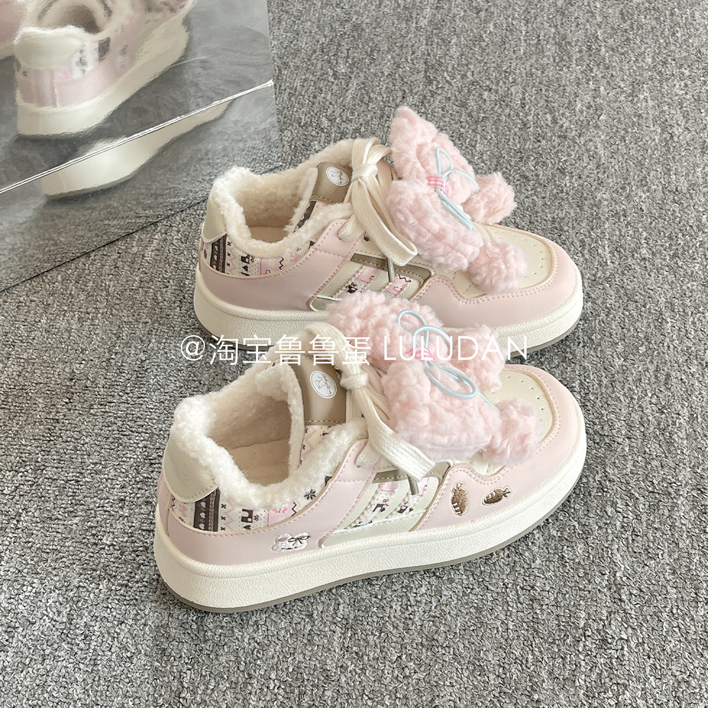 鲁鲁蛋 冬季二棉鞋厚底小白鞋女款2025新款爆款加绒板鞋面包鞋子
