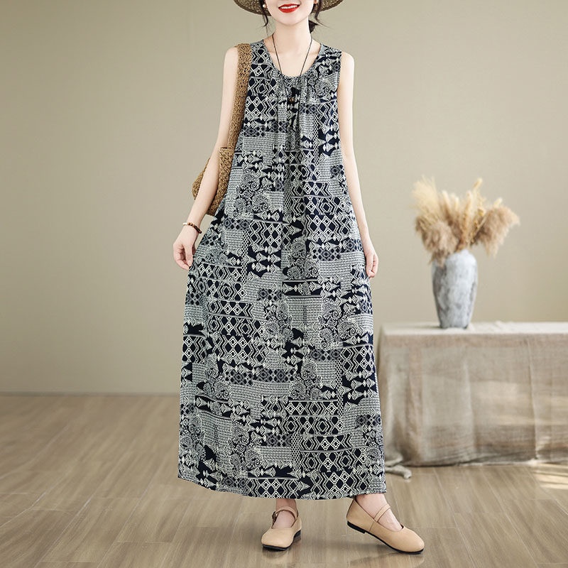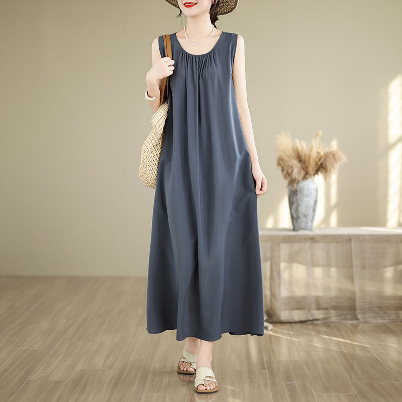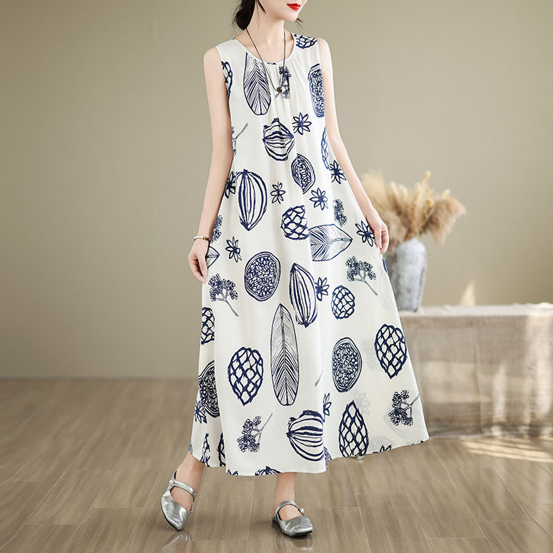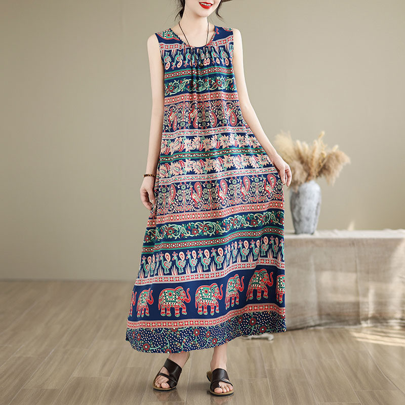 新款海边度假风收腰无袖棉绸连衣裙女大码显瘦胖mm沙滩吊带长裙子