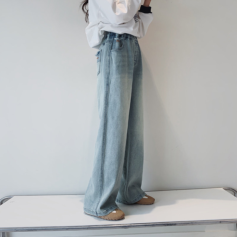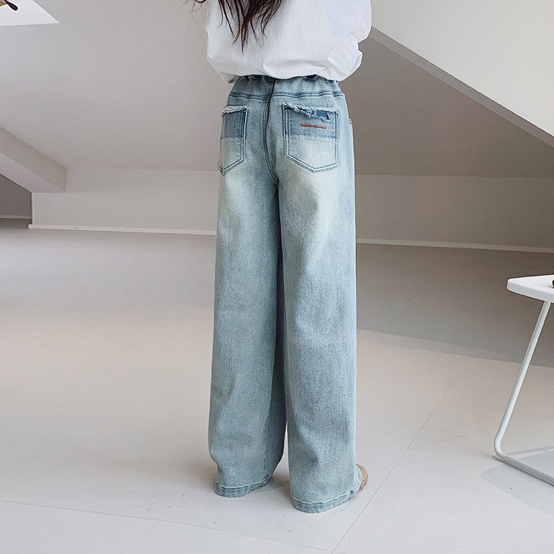 女童牛仔裤2026春装新款女大童初中生复古直筒裤青少年休闲长裤子