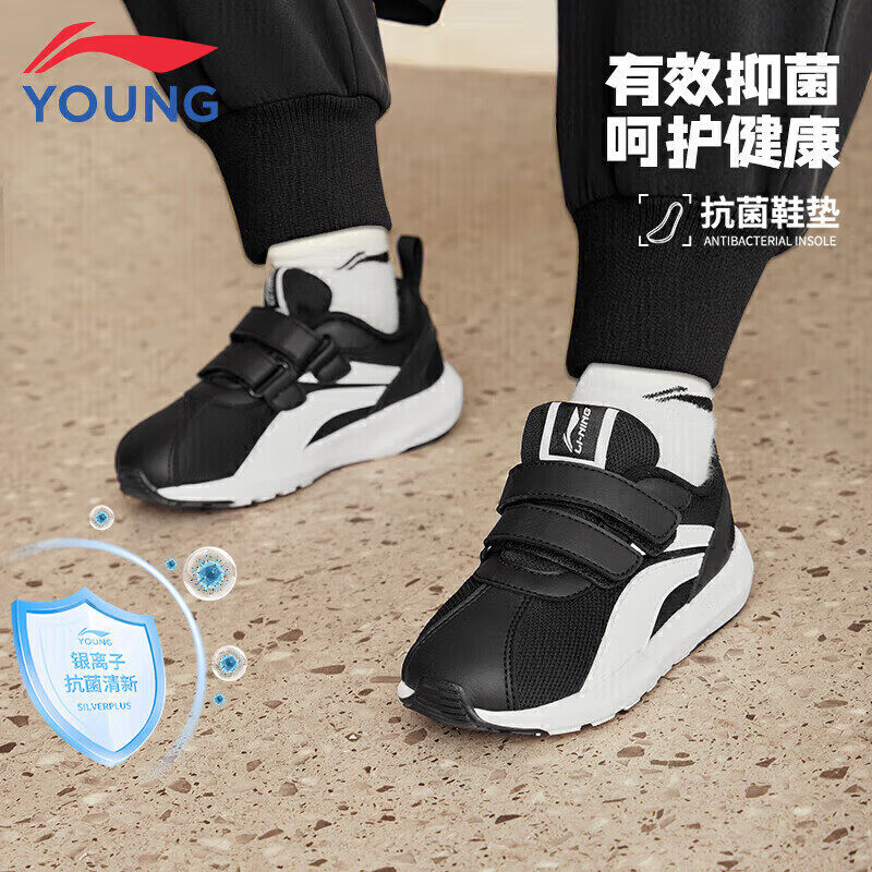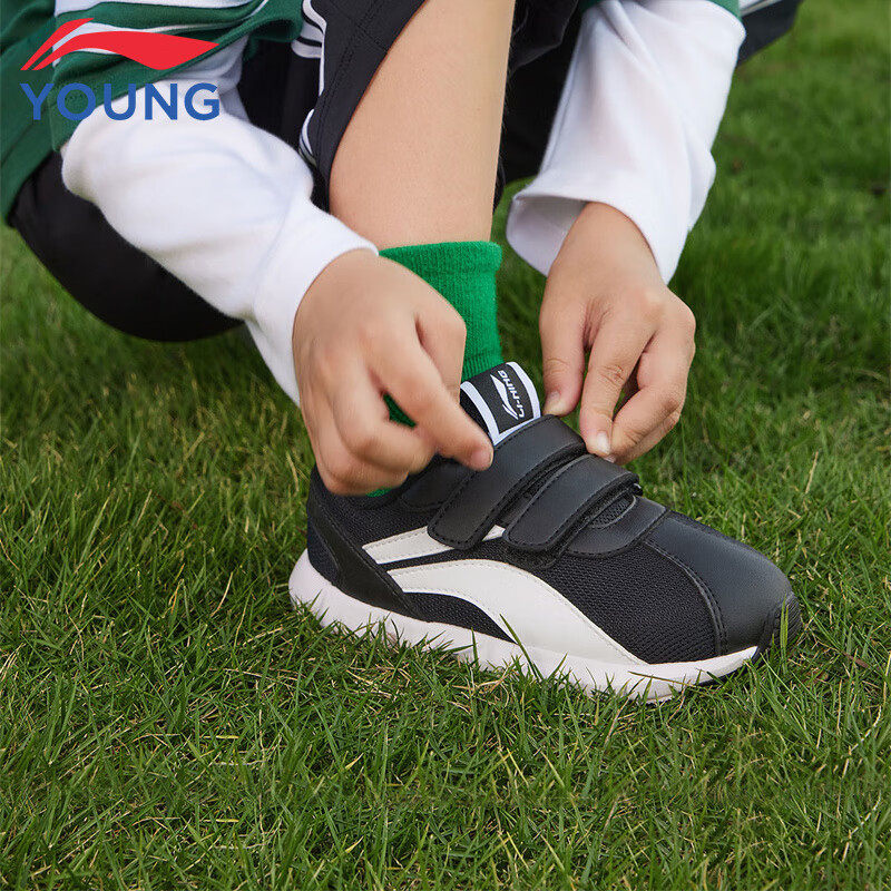 李宁童鞋儿童运动鞋男女小童26春秋新款魔术贴轻便休闲鞋小阿甘鞋