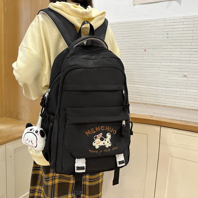 黑色书包初中女生高颜值高中生女2025新款大容量结实耐用双肩背包