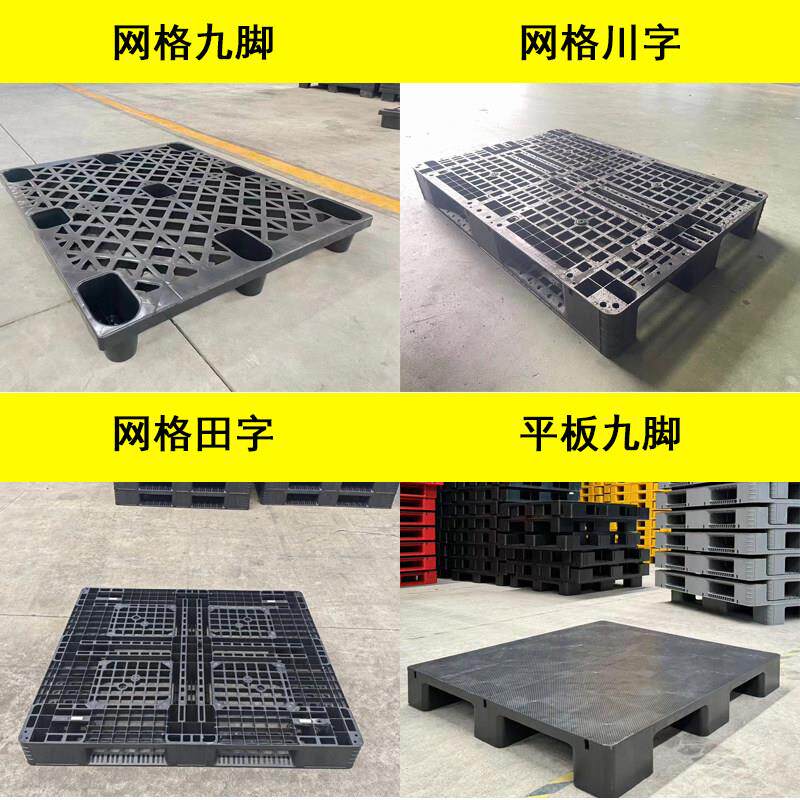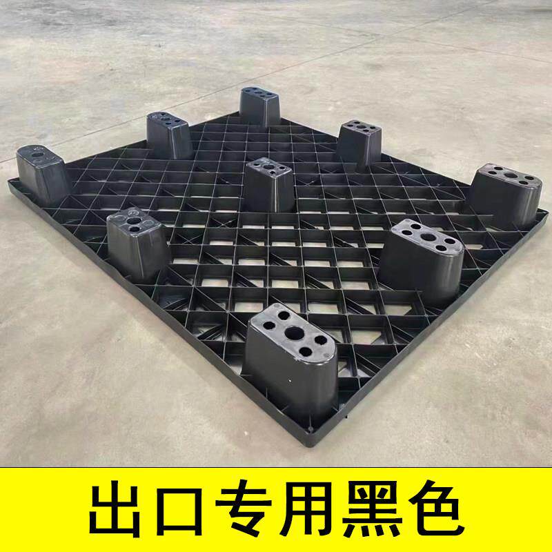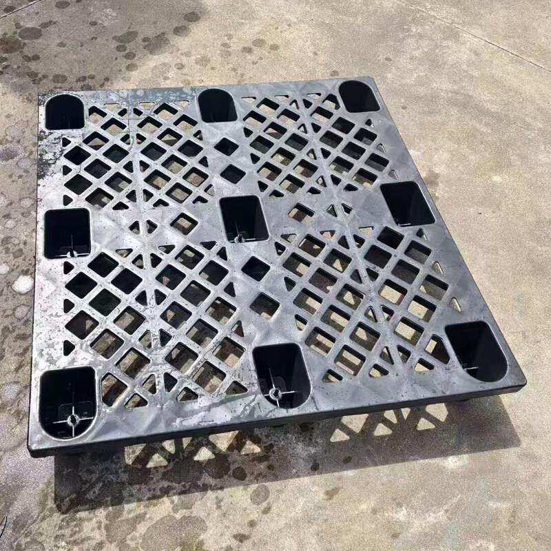 网格九脚塑料托盘黑色防潮川字栈板出口专用田字卡板叉车回料垫板