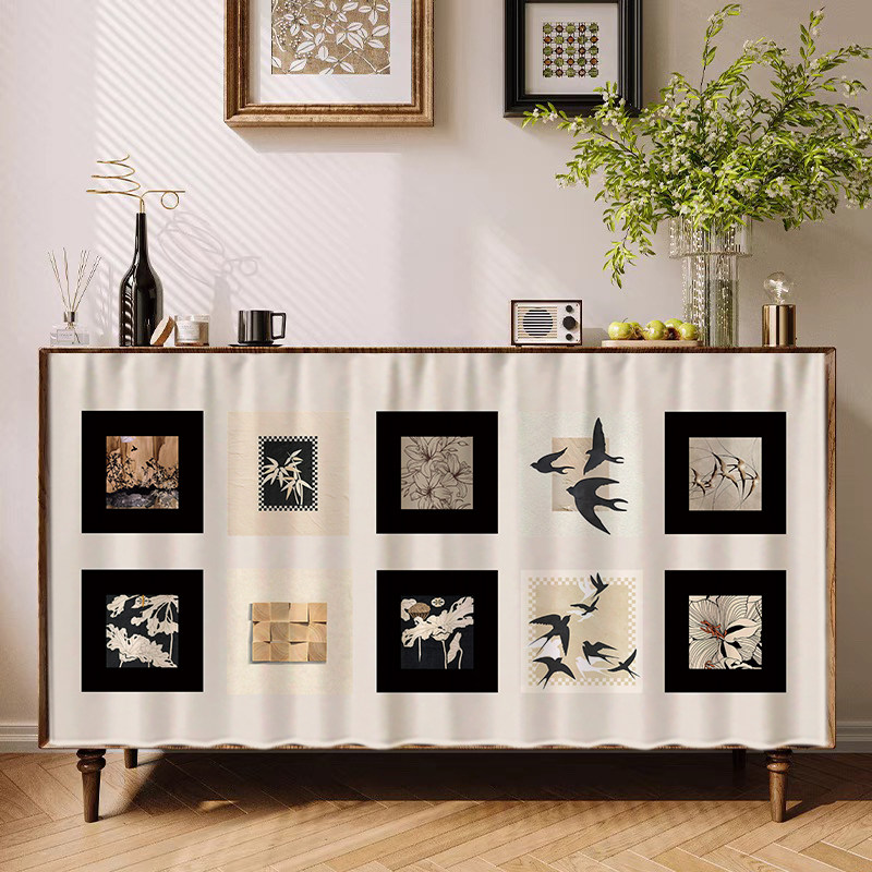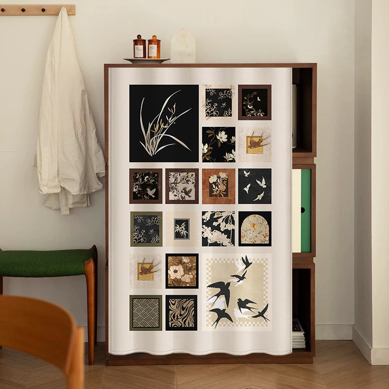 柜子遮挡帘美式复古杂物防尘帘橱柜拉帘免打孔轨道遮丑帘书柜布帘