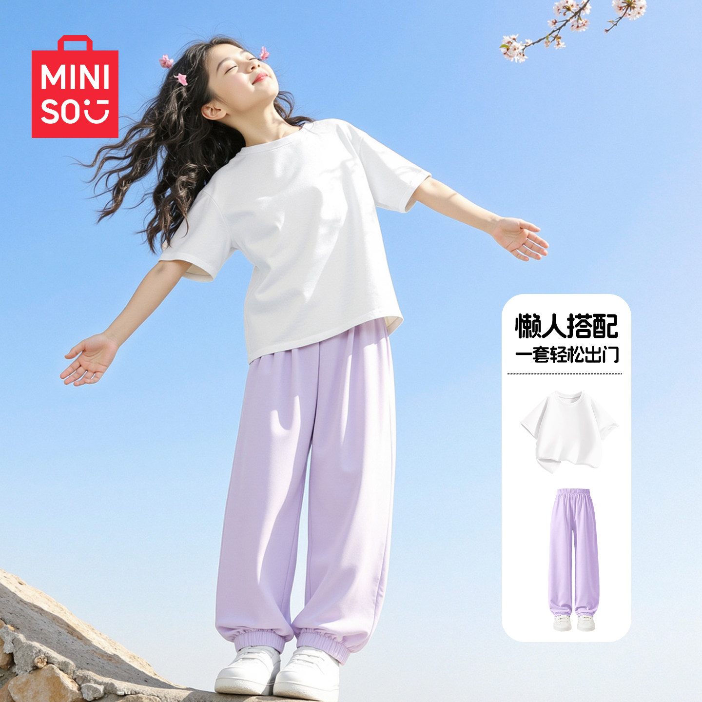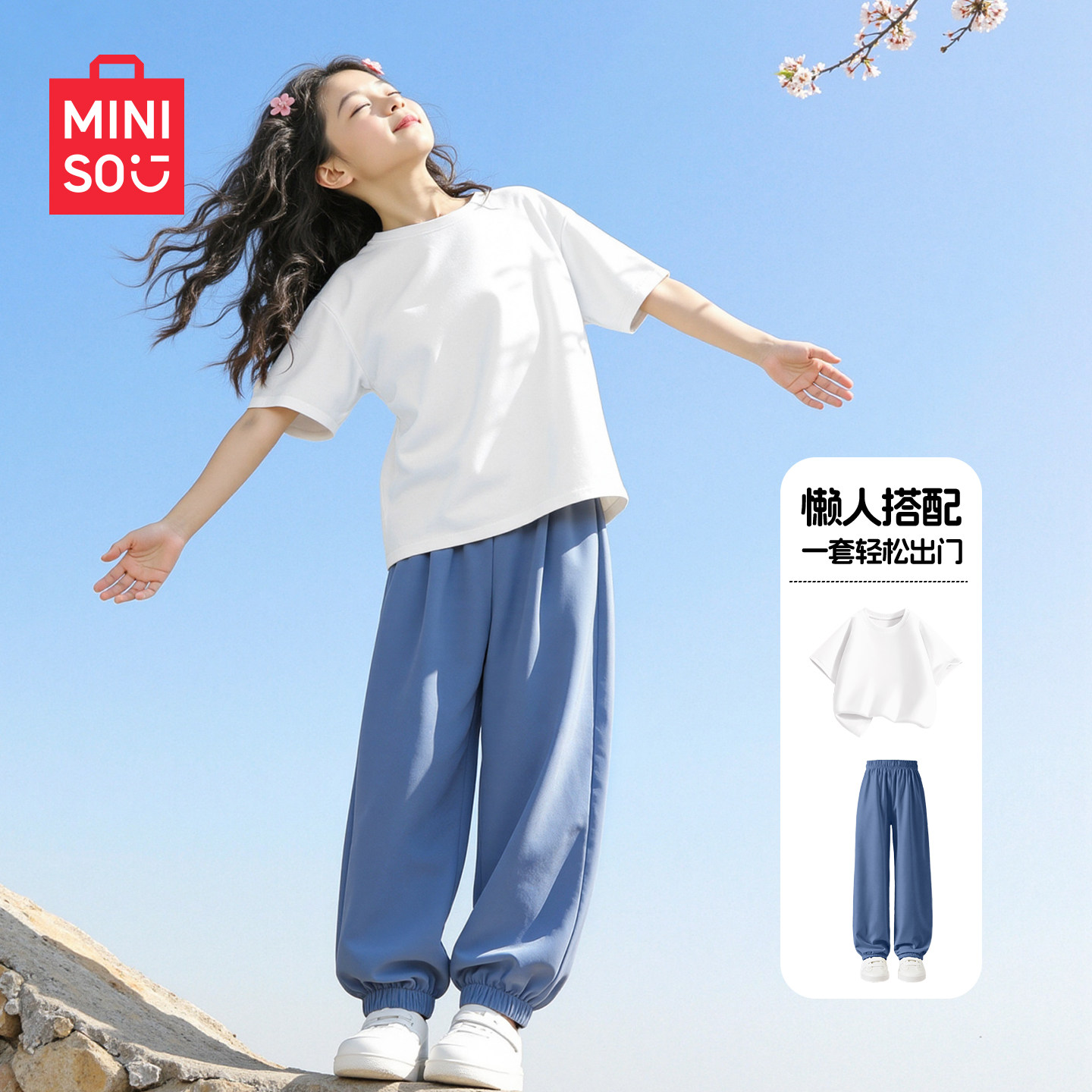 名创优品女童夏套装2026新款休闲裤洋气小公主夏装女儿童运动服C