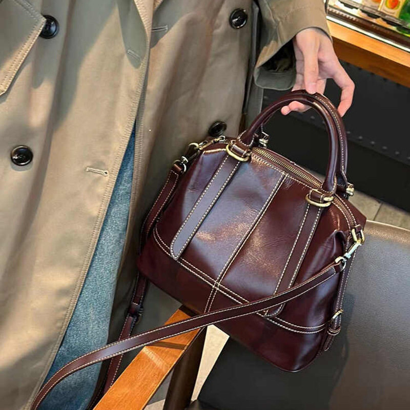 女款大容量手提包牛皮包包高级感女包斜跨包真皮单肩包大气上档次