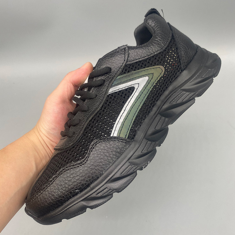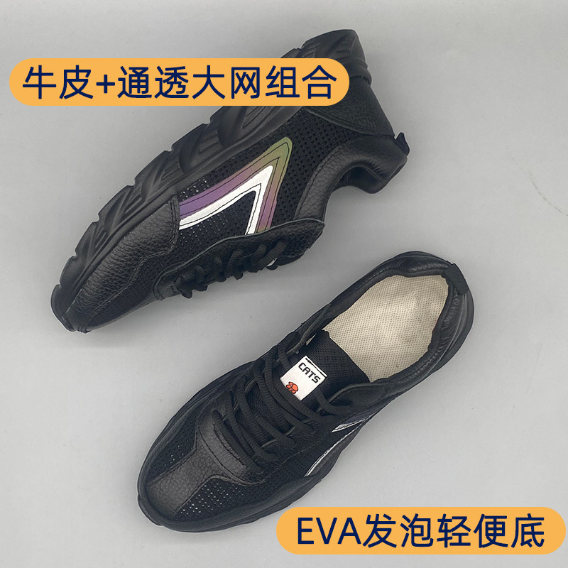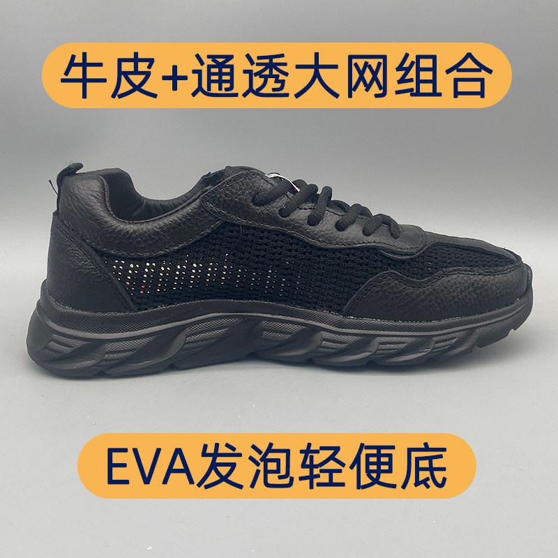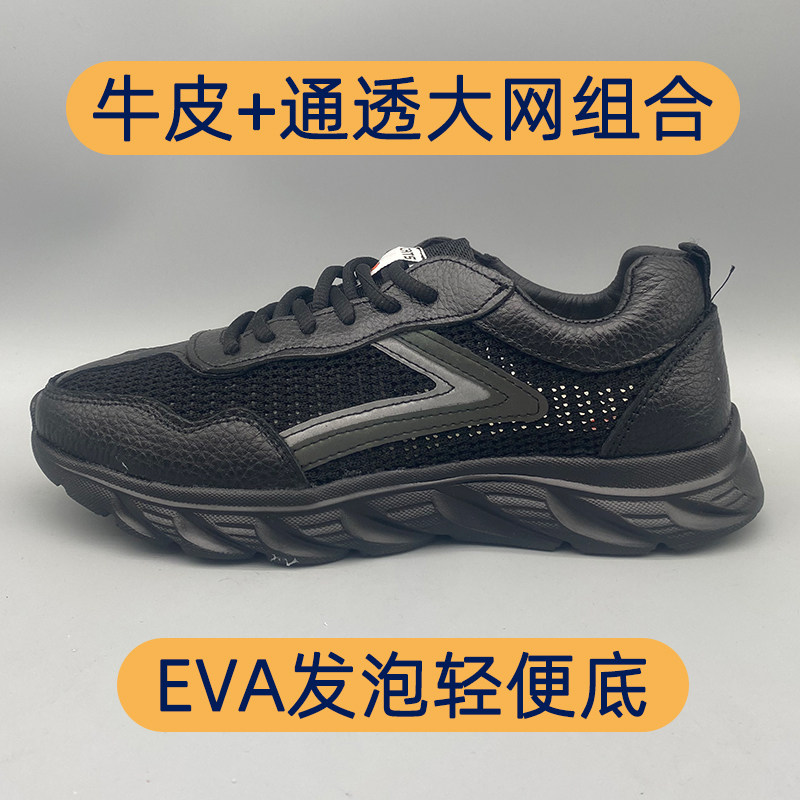 真皮大网面休闲男鞋黑色老爹鞋夏软底头层牛皮工作皮鞋轻便运动鞋