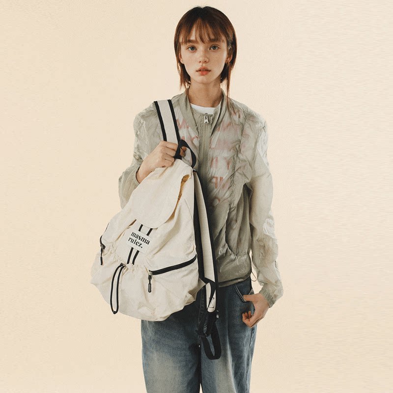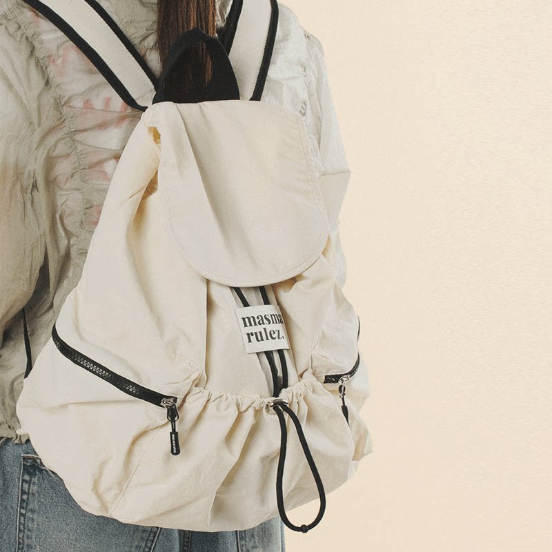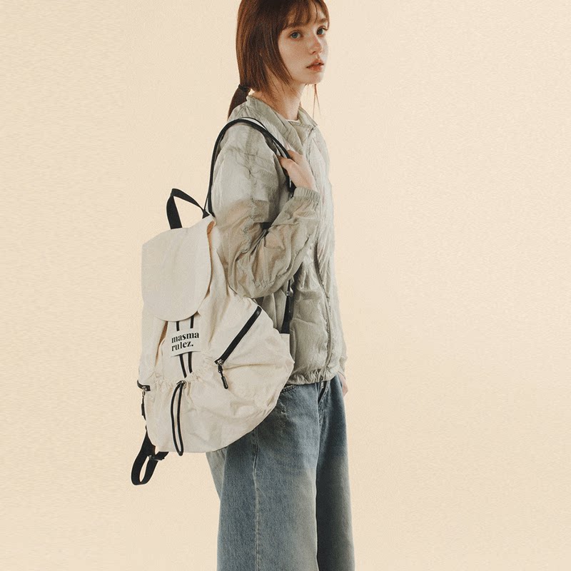 Masmarulez白色翻盖束口双肩包男女户外旅游出行背包学生新款书包