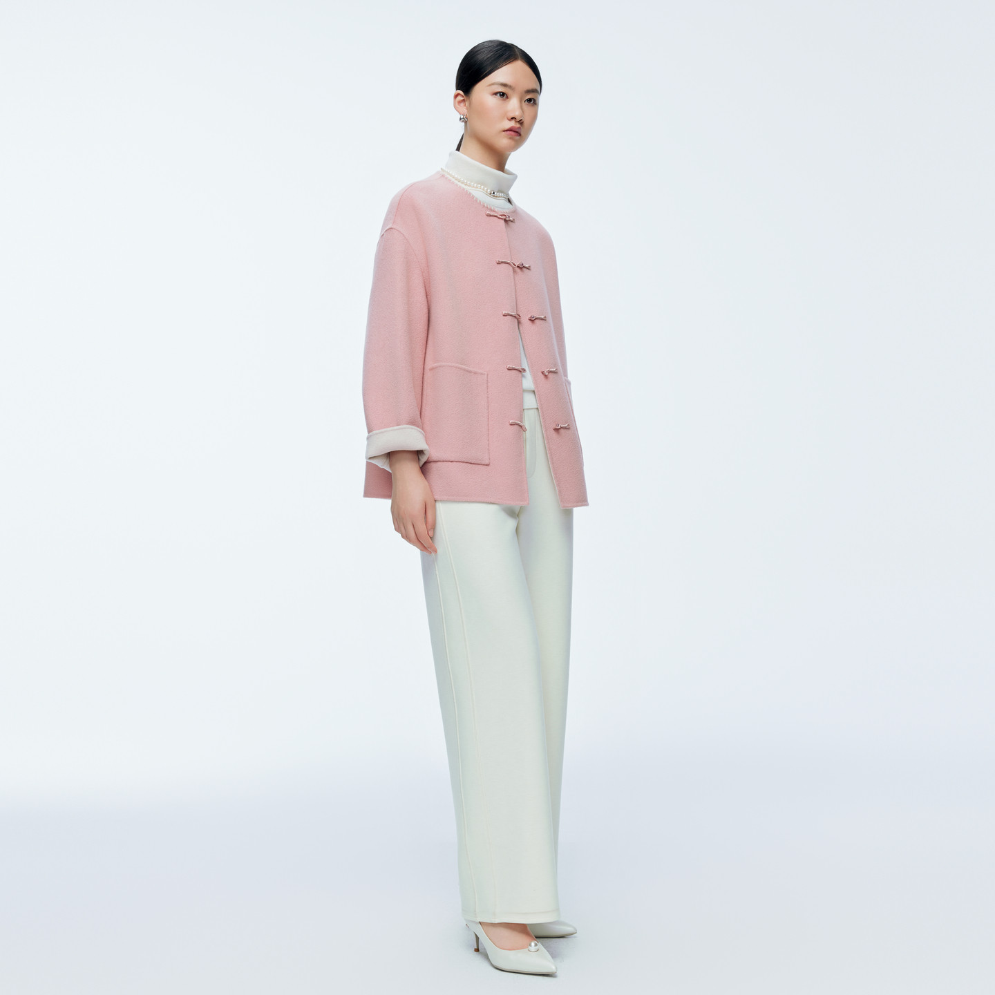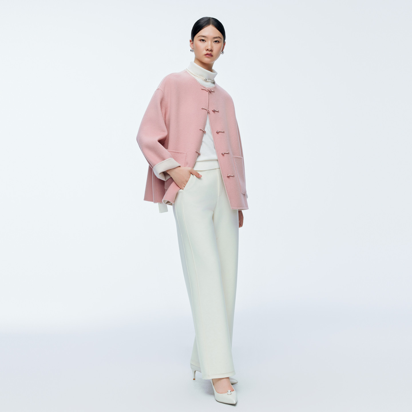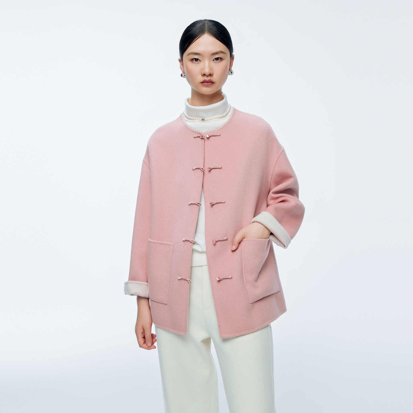 婉甸2025年冬季新品薄纱粉中长款双面呢外套1244E04GS1