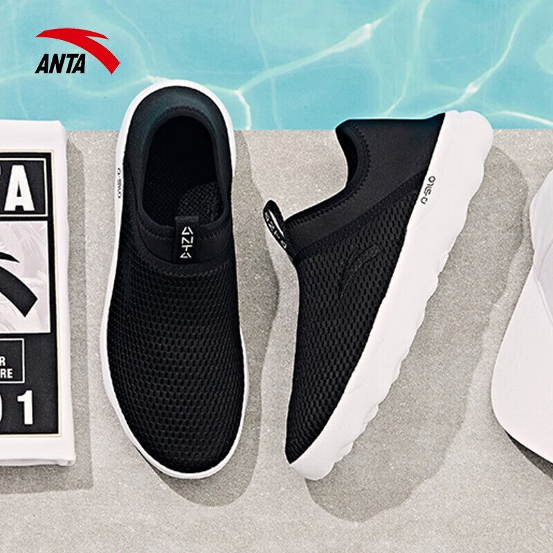 安踏男鞋运动鞋2026新款春季透气懒人鞋一脚蹬网面软底休闲跑步鞋