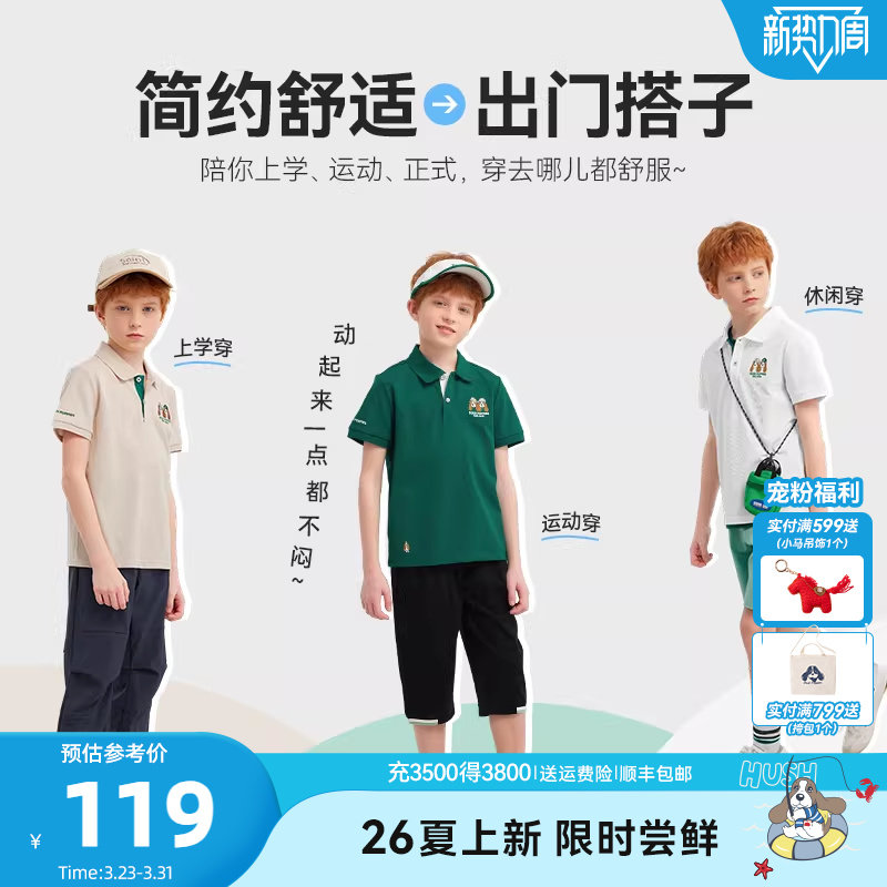 暇步士童装男童POLO衫26夏新款大童学院长袖T恤儿童休闲短袖上衣