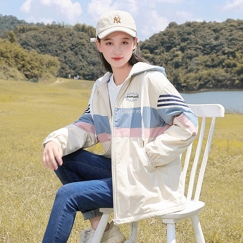 加绒外套少女12女孩13初中学生14岁15青少年加厚风衣棉服冬棉衣