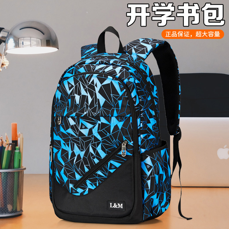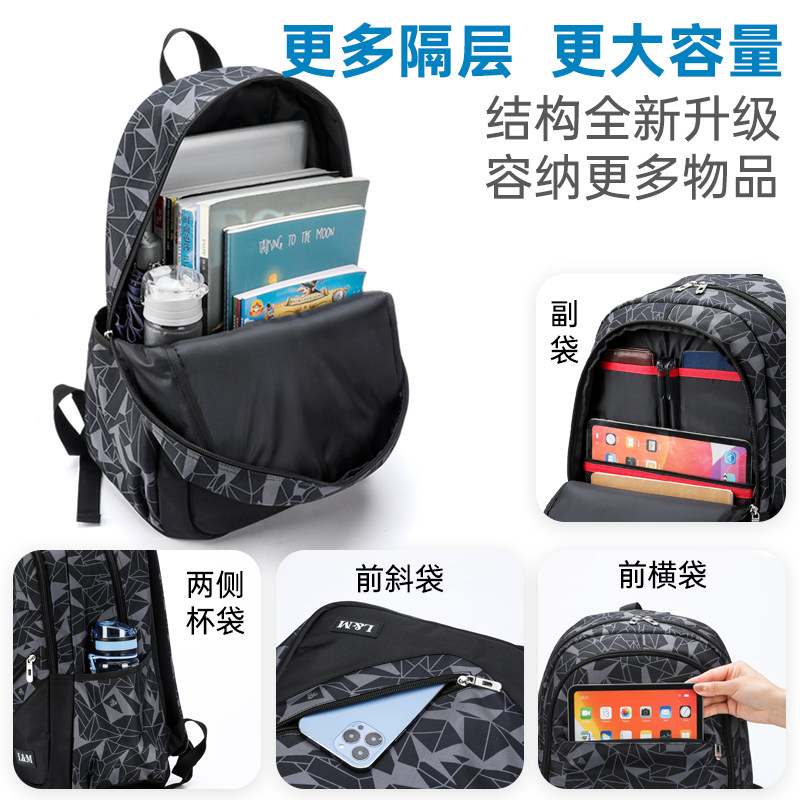 L&M书包男生初中生中学生大容量双肩包男高中生防水减负护脊背包