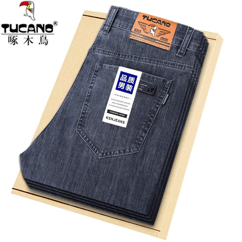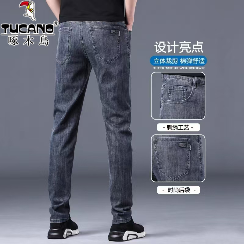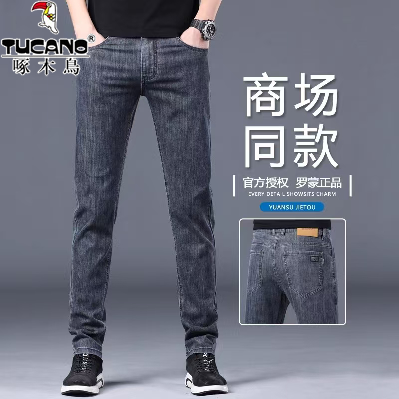 啄木鸟灰色牛仔裤男夏季薄款弹力修身直筒2026新款冰丝长裤子男款