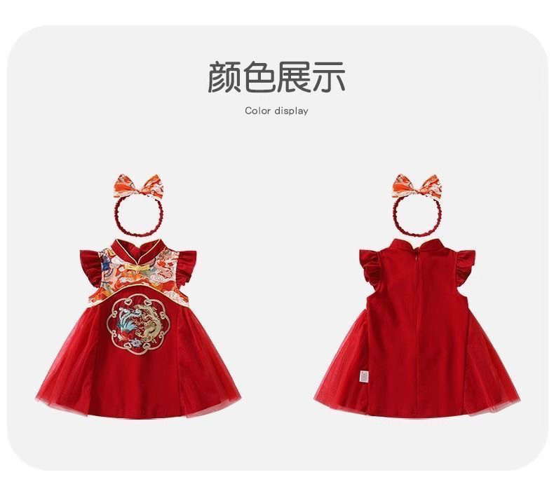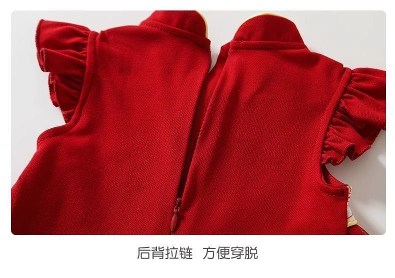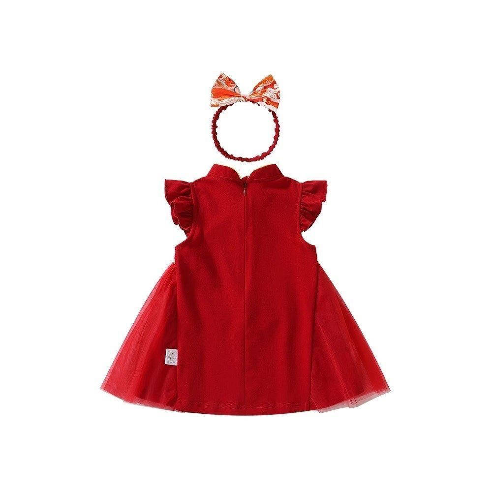 新中式女童连衣裙夏季周岁女宝宝抓周宴衣服百岁宴红色礼服