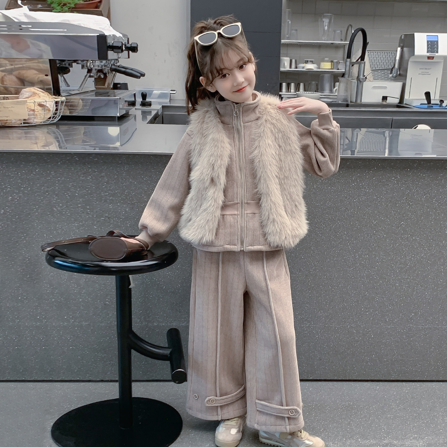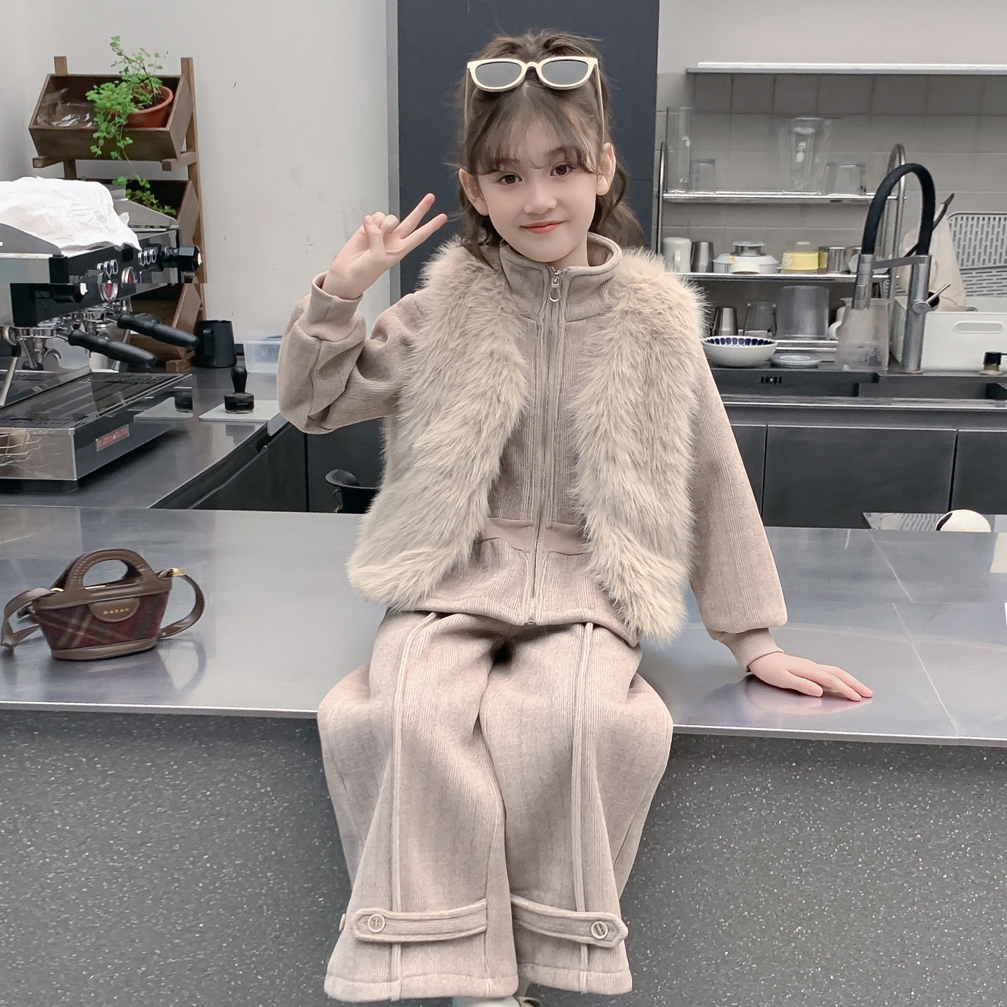 女童套装秋冬款2026新款儿童网红洋气时髦小香风马甲冬装三件套厚