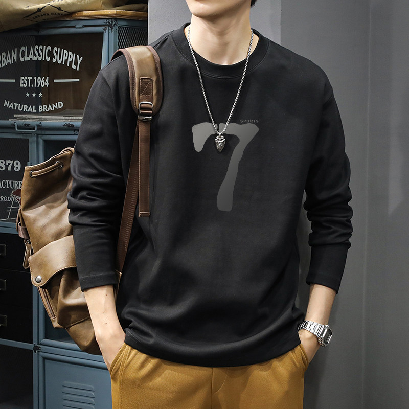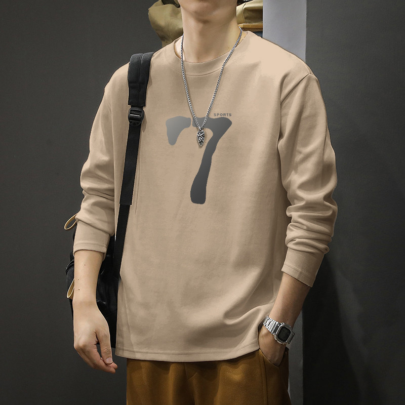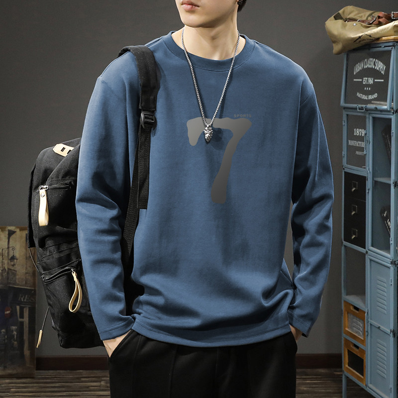 纯棉长袖男t恤春秋季2026新款美式上衣青少年休闲圆领打底衫男款