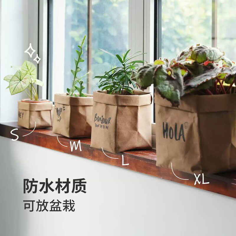 牛皮纸收纳袋可水洗ins风花盆冰箱厨房水果食品包装环保纸袋防水